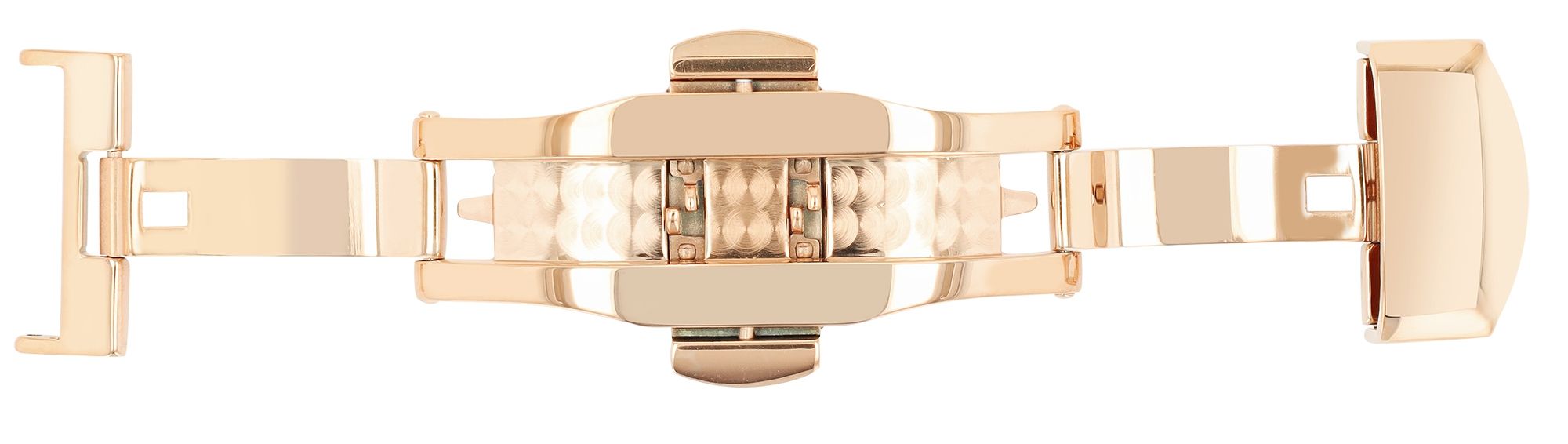 Eine hochwertige Option für Uhren - unsere Butterflyschließe aus Edelstahl! Hergestellt aus einem hochwertigen Material garantieren diese Schließen nicht nur Langlebigkeit, sondern auch Widerstandsfähigkeit gegenüber äußeren Einflüssen. Damit bleibt nicht nur die Präzision der Uhr gewahrt, sondern auch das Erscheinungsbild. Die Butterflyschließe setzt Maßstäbe in Sachen Tragekomfort und Sicherheit. Sie ermöglicht ein müheloses Öffnen und Schließen und gewährt eine zuverlässige Befestigung am Handgelenk. Unsere Butterflyschließen sind in vier Farbvarianten erhältlich: silber,- gold-- roségold oder schwarz. Die Auswahl zwischen den vier Farben, sowie die Breite von 16 mm des Schließenanstoßes macht sie zu einer vielseitigen Option, die sich in eine breite Palette von Uhrenbändern integrieren lässt.