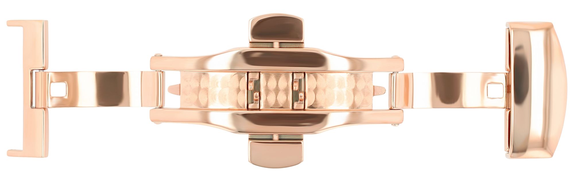 Eine hochwertige Option für Uhren - unsere Butterflyschließe aus Edelstahl! Hergestellt aus einem hochwertigen Material garantieren diese Schließen nicht nur Langlebigkeit, sondern auch Widerstandsfähigkeit gegenüber äußeren Einflüssen. Damit bleibt nicht nur die Präzision der Uhr gewahrt, sondern auch das Erscheinungsbild. Die Butterflyschließe setzt Maßstäbe in Sachen Tragekomfort und Sicherheit. Sie ermöglicht ein müheloses Öffnen und Schließen und gewährt eine zuverlässige Befestigung am Handgelenk. Unsere Butterflyschließen sind in vier Farbvarianten erhältlich: silber,- gold-- roségold oder schwarz. Die Auswahl zwischen den vier Farben, sowie die Breite von 20 mm des Schließenanstoßes macht sie zu einer vielseitigen Option, die sich in eine breite Palette von Uhrenbändern integrieren lässt.