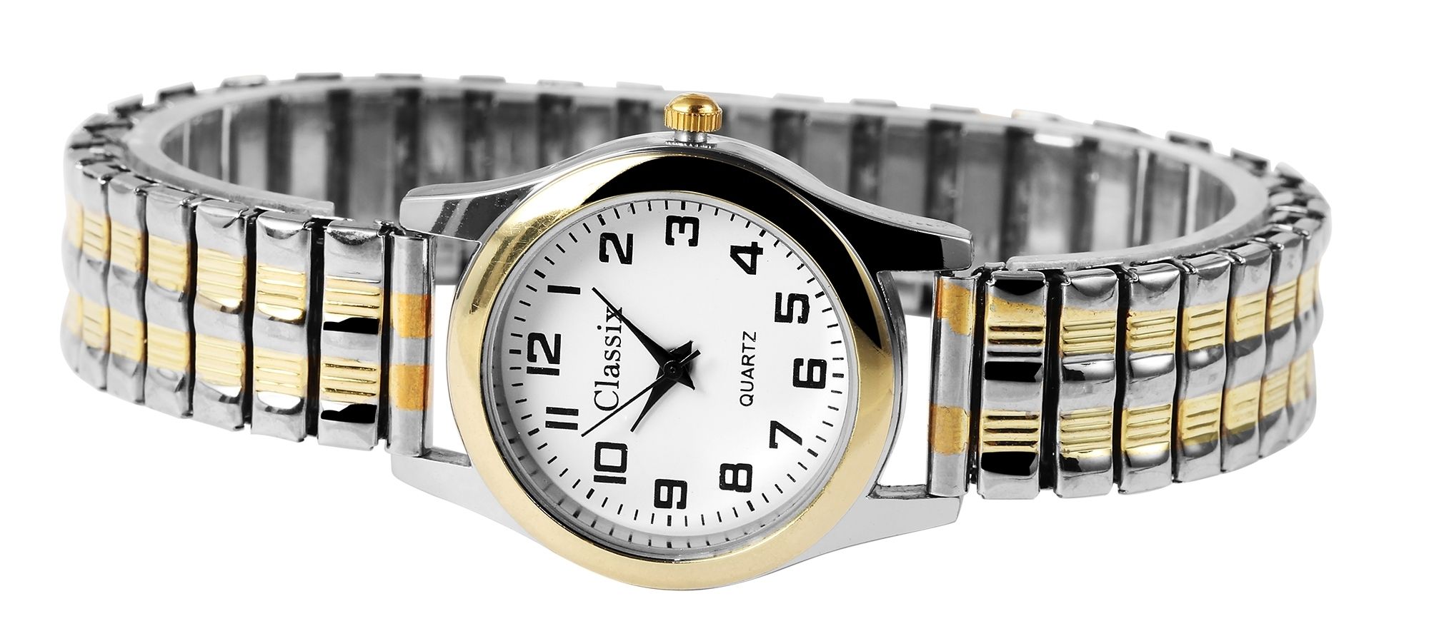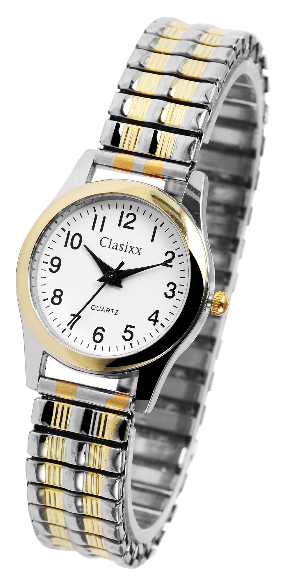 Produktinformationen "CLASIXX Damenuhr mit Edelstahl-Zugband, Ø 28 mm, bicolor/ weiß"
