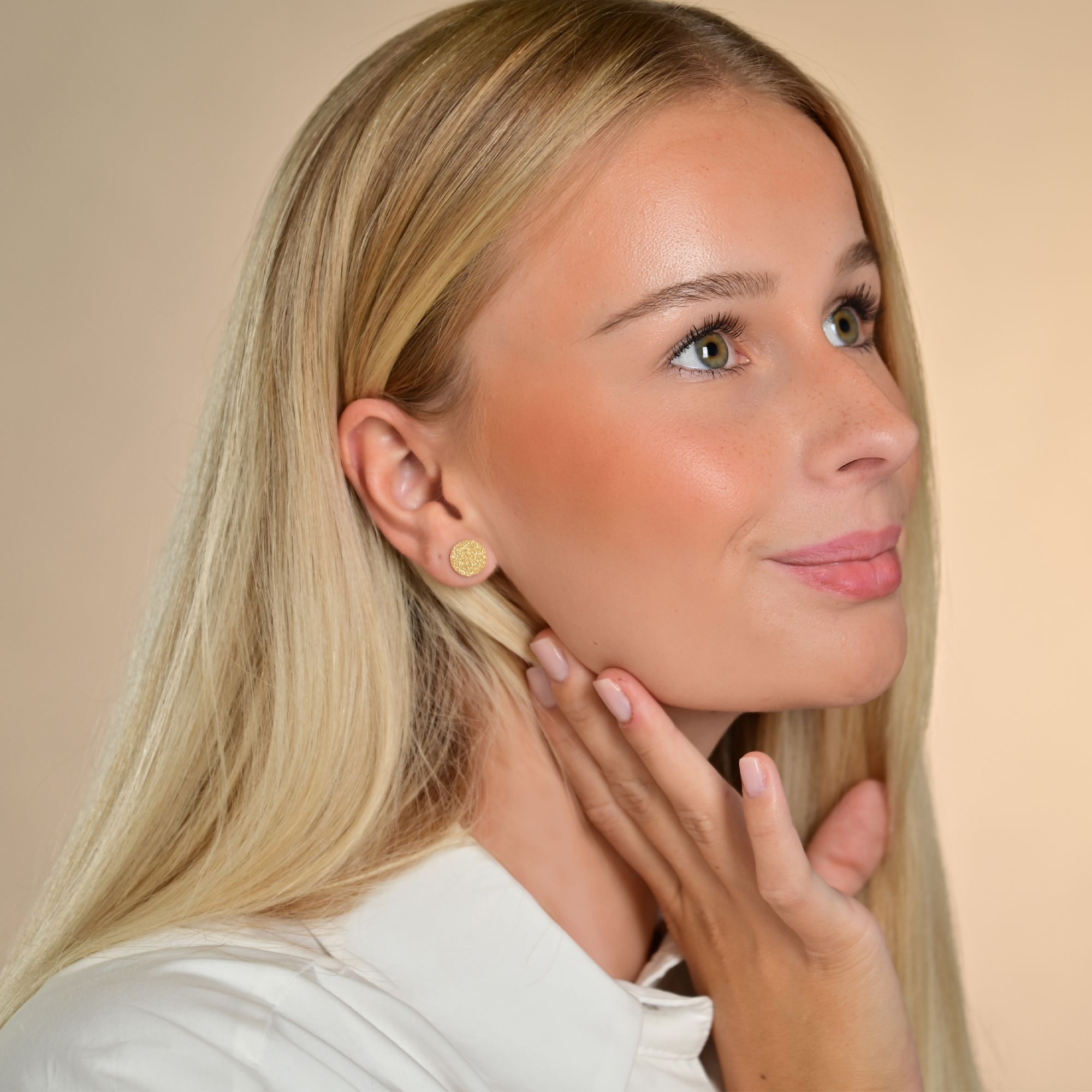 Diese zeitlosen runden Ohrstecker der Marke Akzent sind aus hochwertigem Edelstahl gefertigt und vereinen Langlebigkeit mit einem modernen Design. Die sandgestrahlte, matte Oberfläche verleiht den Ohrsteckern eine besondere Textur, die durch einen leichten Glitzer-Effekt besticht und bei Lichteinfall dezent funkelt.