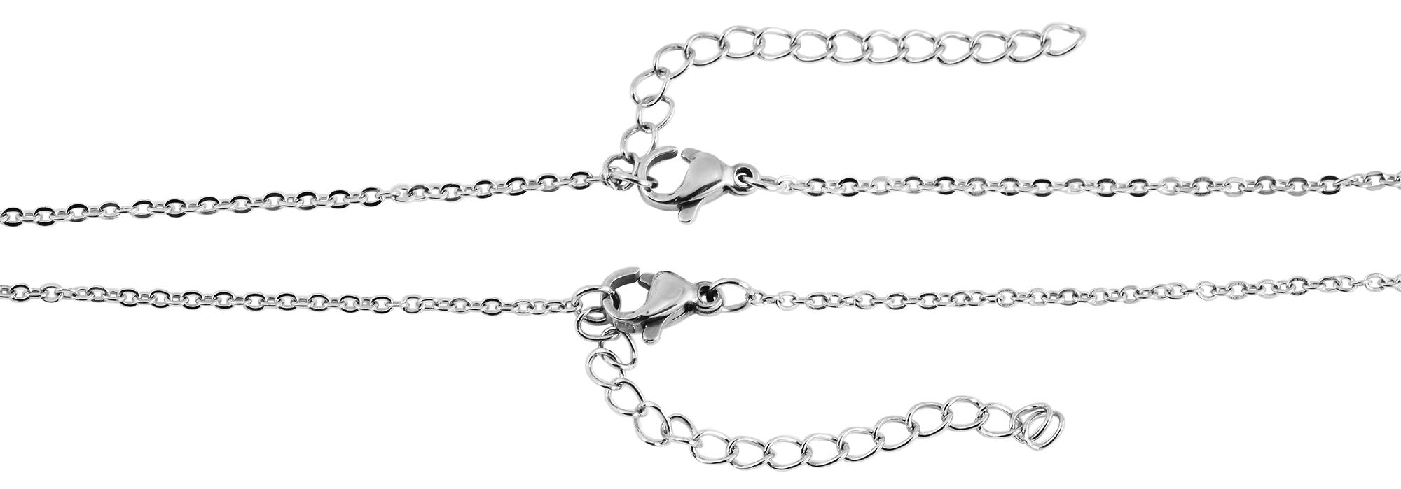 Die Halsketten der Marke Akzent sind aus Edelstahl im Ankermuster gefertigt. An den Ketten ist jeweils ein Anhänger in Form eines halben Herzens angebracht. Diese Ketten sind das perfekte Accessoire um Freundschaft oder Liebe mit den Liebsten zu zelebrieren und das ganz individuell, denn der Herzanhänger kann mit Gravuren versehen werden, die das Schmuckstück zu einem Unikat machen. Öffnen und schließen lassen sich beide Halsketten mit einem Karabinerhaken, der ebenfalls aus Edelstahl gefertigt ist. Zusätzlich ist an beide Enden der Ketten eine 5 cm Verlängerung angebracht, die es ermöglicht in der Länge zu variieren und die das zarte Schmuckstück so jedem Outfit anpassen zu können.