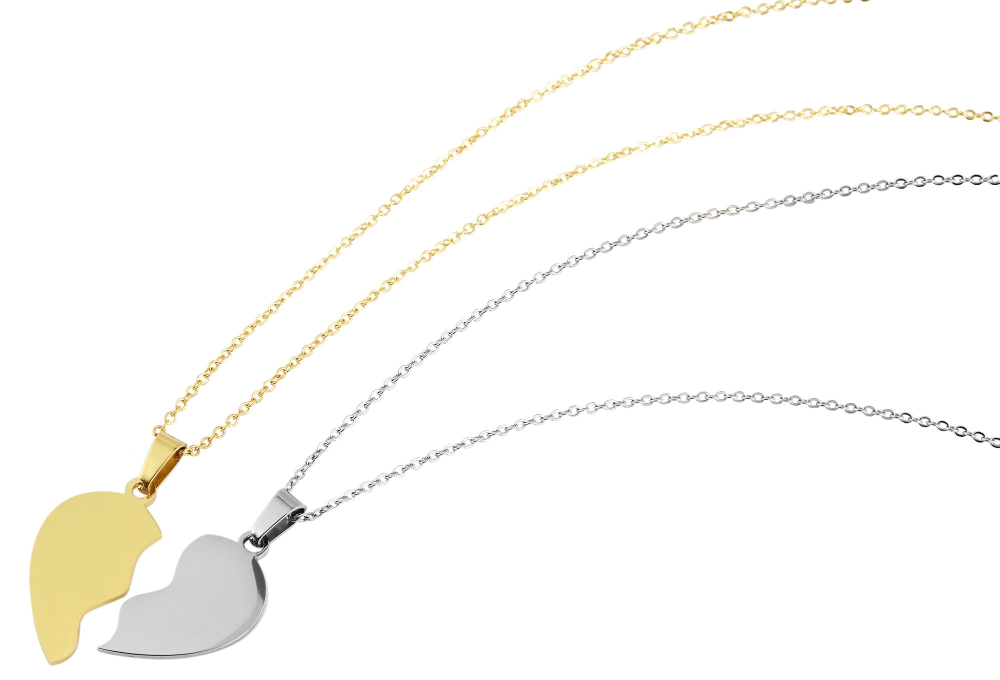 Produktinformationen ""Caral", Akzent Partnerketten/Freundschaftskette, Edelstahl, Herz, gravierbar, poliert, silberfarben/goldfarben, 43+5 cm"