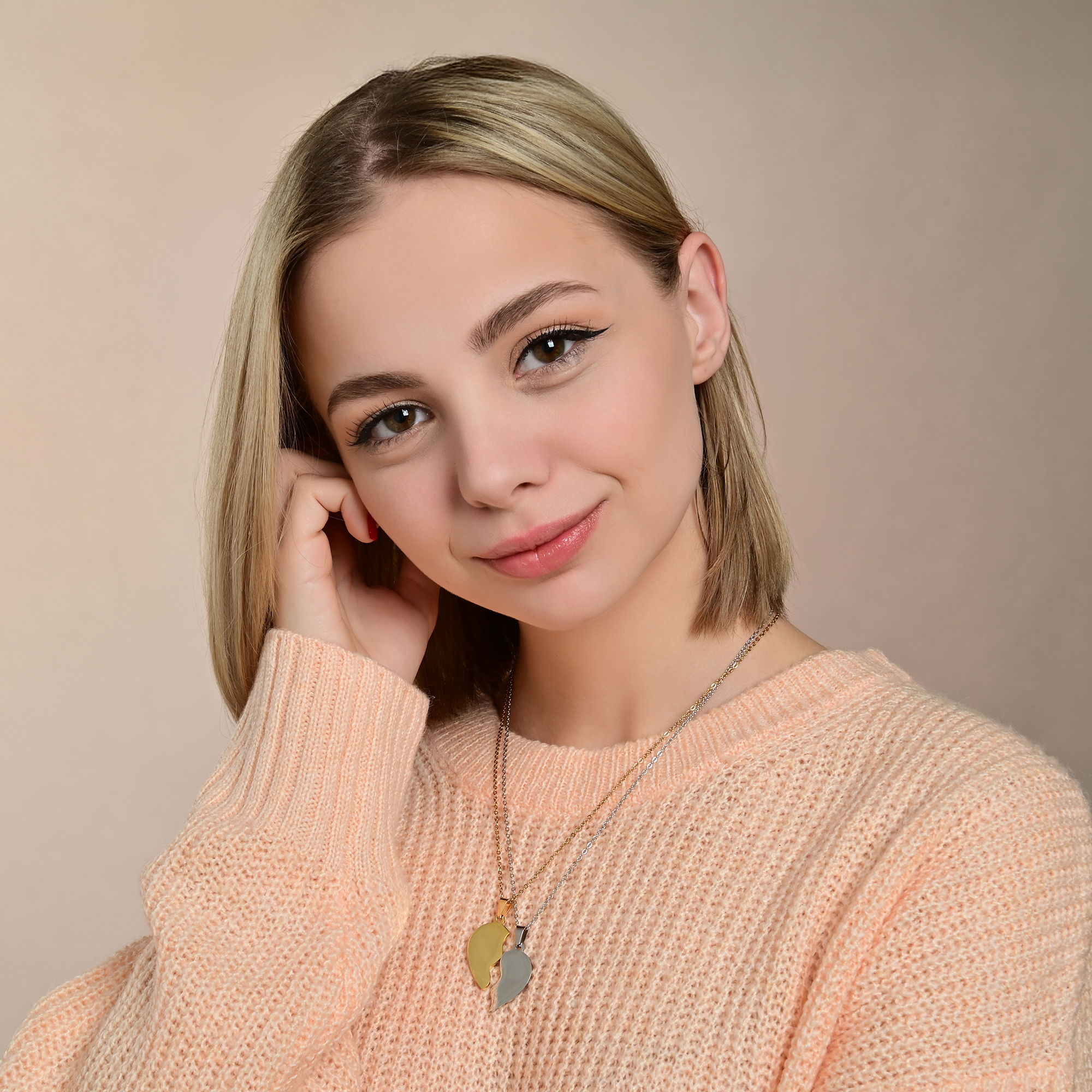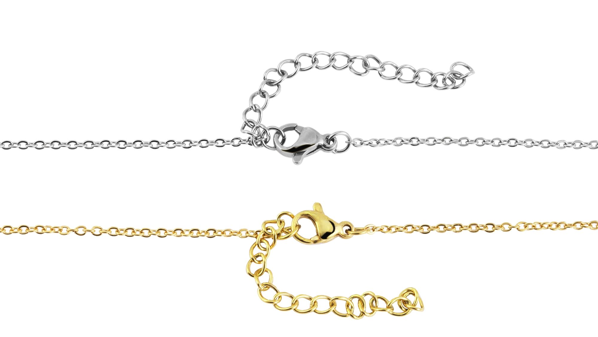 Die Halsketten der Marke Akzent sind aus Edelstahl im Ankermuster gefertigt. An den Ketten ist jeweils ein Anhänger in Form eines halben Herzens angebracht. Diese Ketten sind das perfekte Accessoire um Freundschaft oder Liebe mit den Liebsten zu zelebrieren und das ganz individuell, denn der Herzanhänger kann mit Gravuren versehen werden, die das Schmuckstück zu einem Unikat machen. Öffnen und schließen lassen sich beide Halsketten mit einem Karabinerhaken, der ebenfalls aus Edelstahl gefertigt ist. Zusätzlich ist an beide Enden der Ketten eine 5 cm Verlängerung angebracht, die es ermöglicht in der Länge zu variieren und die das zarte Schmuckstück so jedem Outfit anpassen zu können.