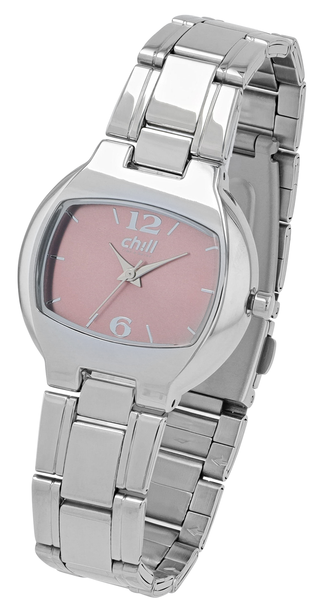 Chill, Damenuhr mit Edelstahlband, rechteckig, silberfarben/ rosa