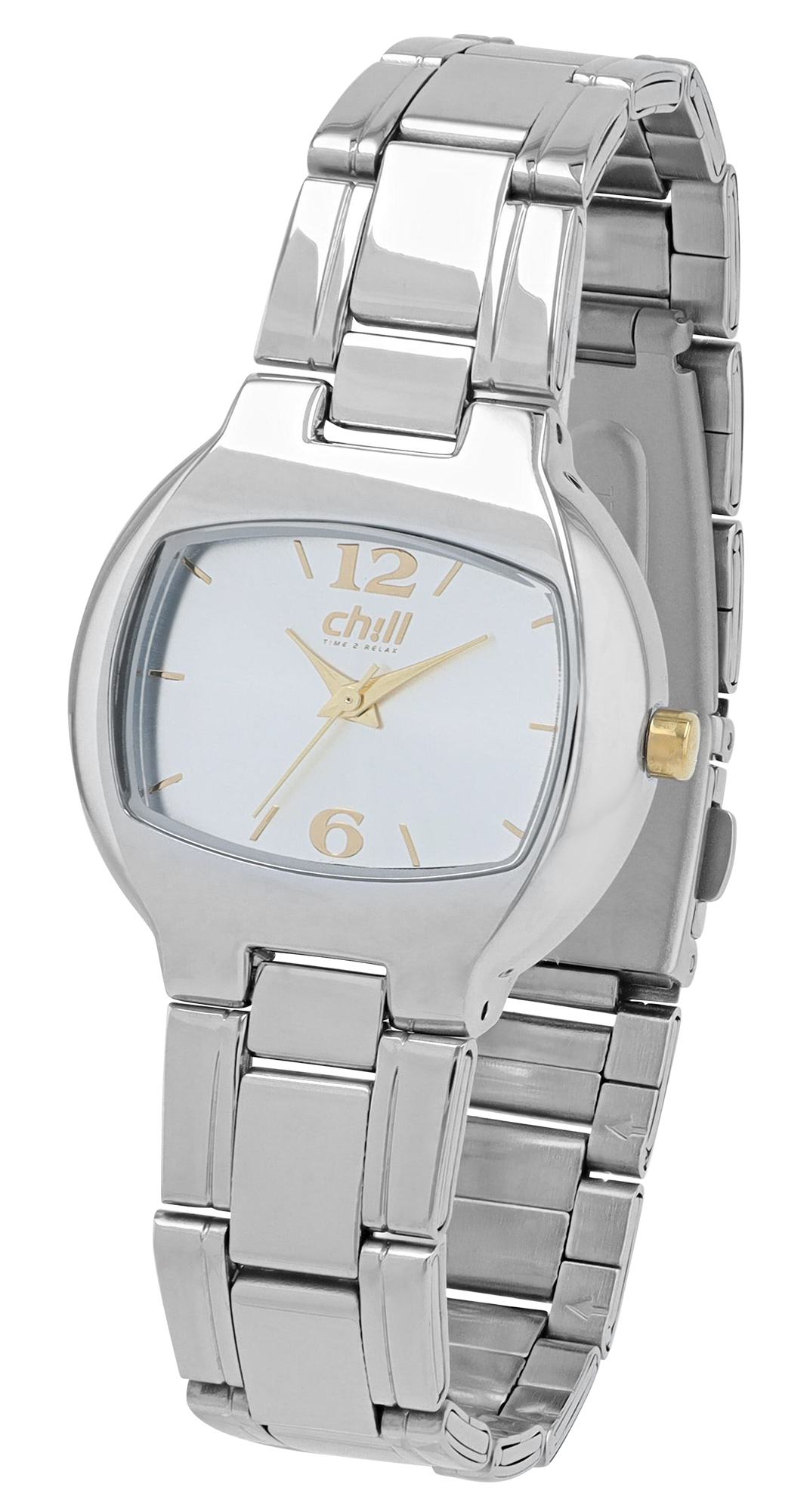 Chill, Damenuhr mit Edelstahlband, rechteckig, silberfarben