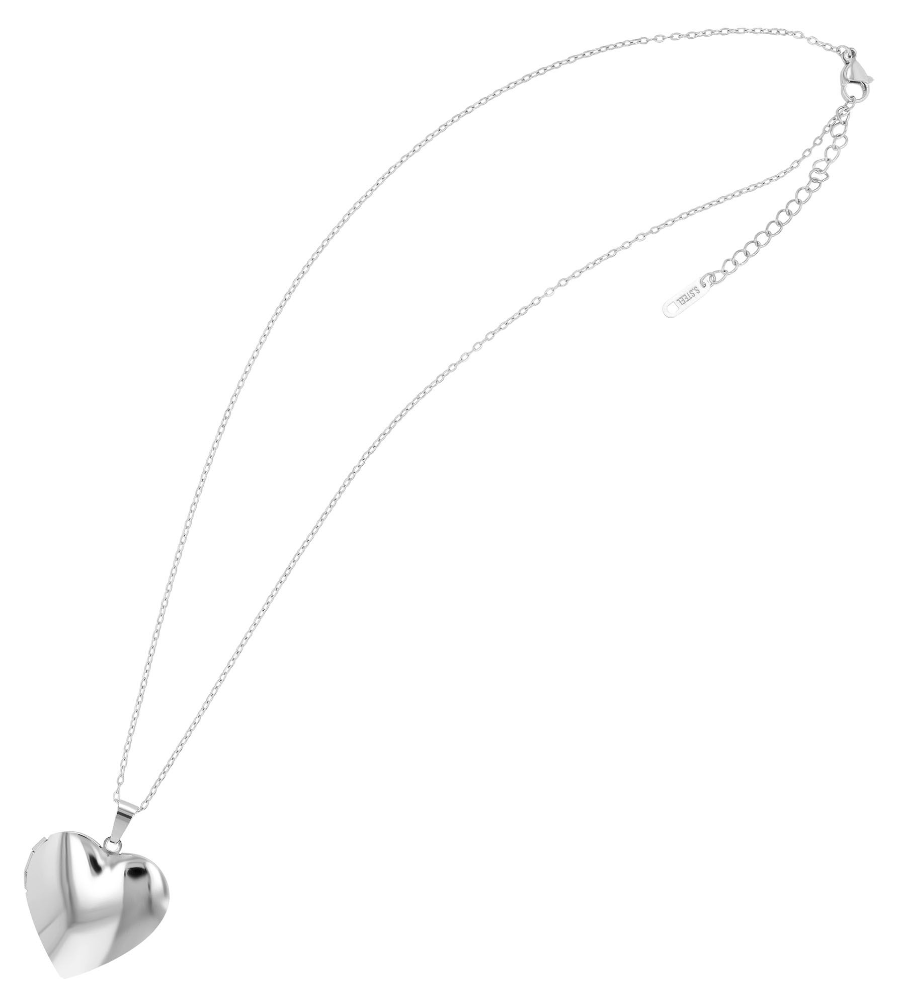 Diese Halskette und der zugehörigen Anhänger sind aus langlebigem Edelstahl gefertigt, wodurch sie strapazierfähig, langlebig und äußerst robust sind. Die Kette ist in den Farben Silber und Gold erhältlich, um jedem individuellen Geschmack gerecht zu werden. Mit einer Länge von 43 cm und einem zusätzlichen 5 cm langen Verlängerungskettchen bietet diese Kette die Flexibilität, sich perfekt an jede Halsform anzupassen. Der praktische Karabinerhaken sorgt für einen sicheren Verschluss. Das aufklappbare Medaillon mit einer beeindruckenden Größe von 29 x 28 x 8 mm bietet viel Raum für persönliche Erinnerungen, sei es ein Foto oder eine Botschaft. Der hochglanzpolierte Herzanhänger kann sowohl auf der Vorder-, als auch auf der Rückseite mit Gravuren versehen werden, um diesem Schmuckstück eine ganz persönliche Note zu verleihen.