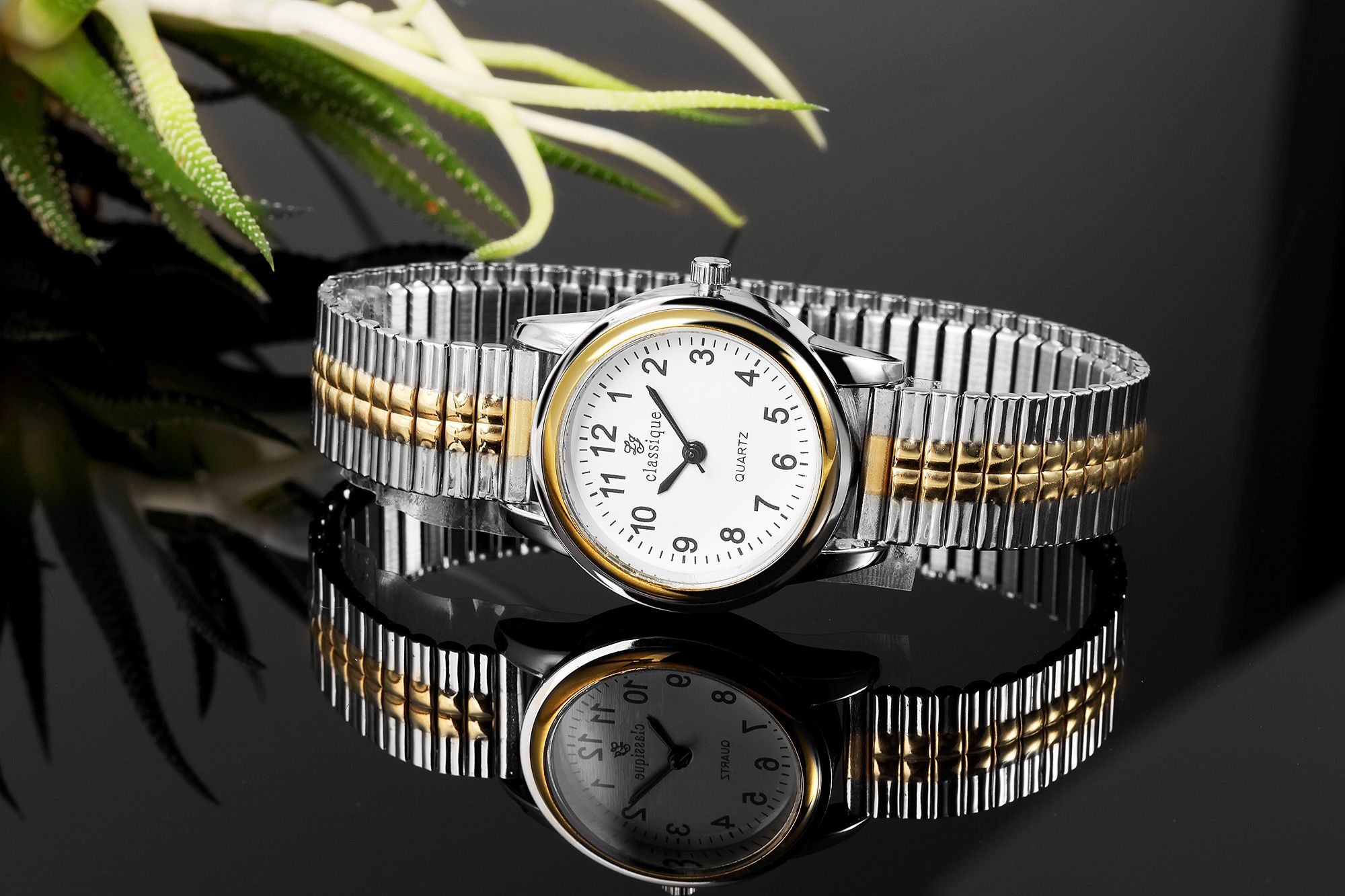 Produktinformationen "Classique Damenuhr mit Edelstahl-Zugarmband Ø 28 mm, bicolor/ weiß"
