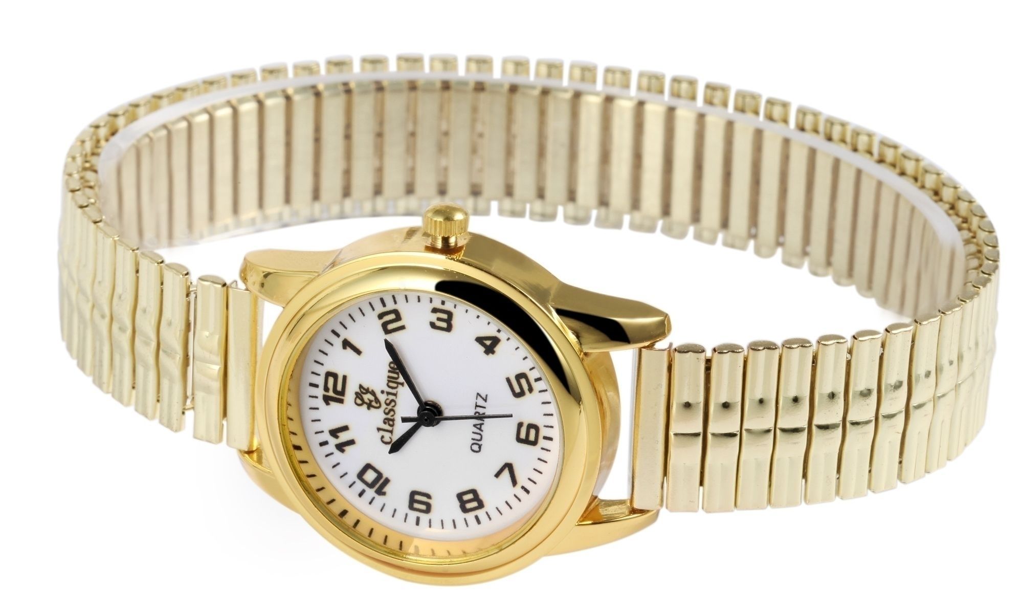 Produktinformationen "Classique Damenuhr mit Edelstahl-Zugarmband Ø 28 mm, goldfarben/ weiß"