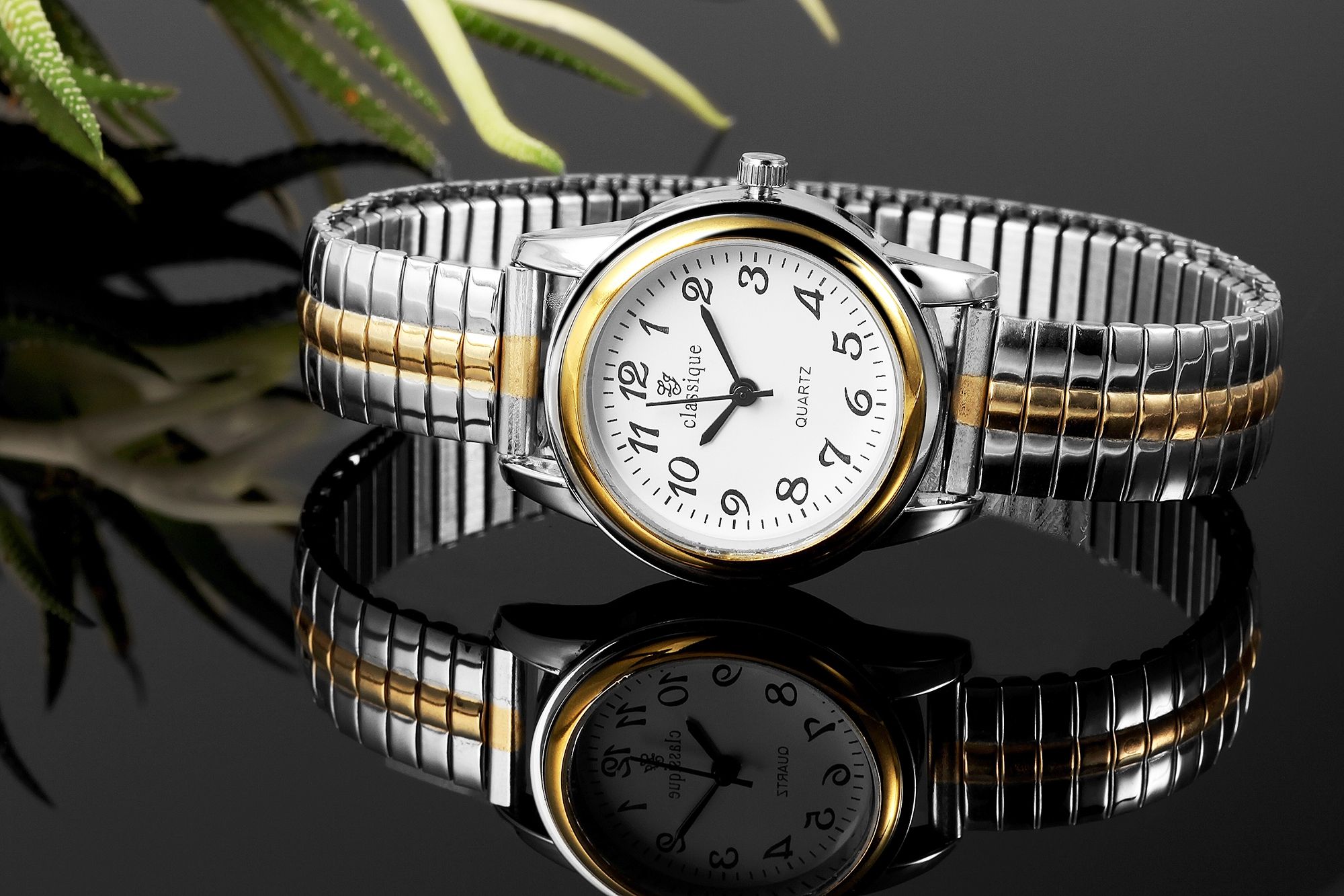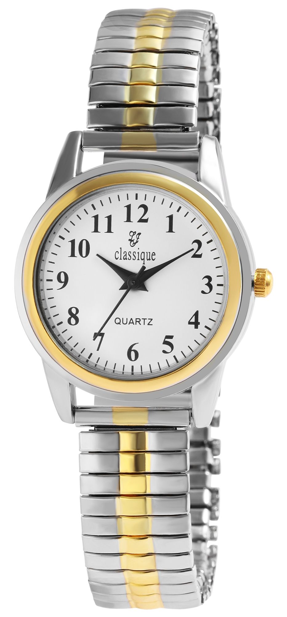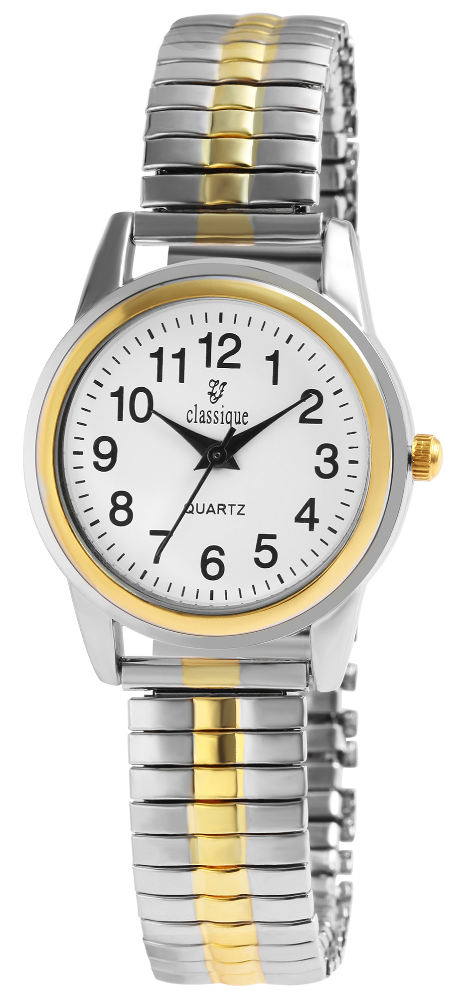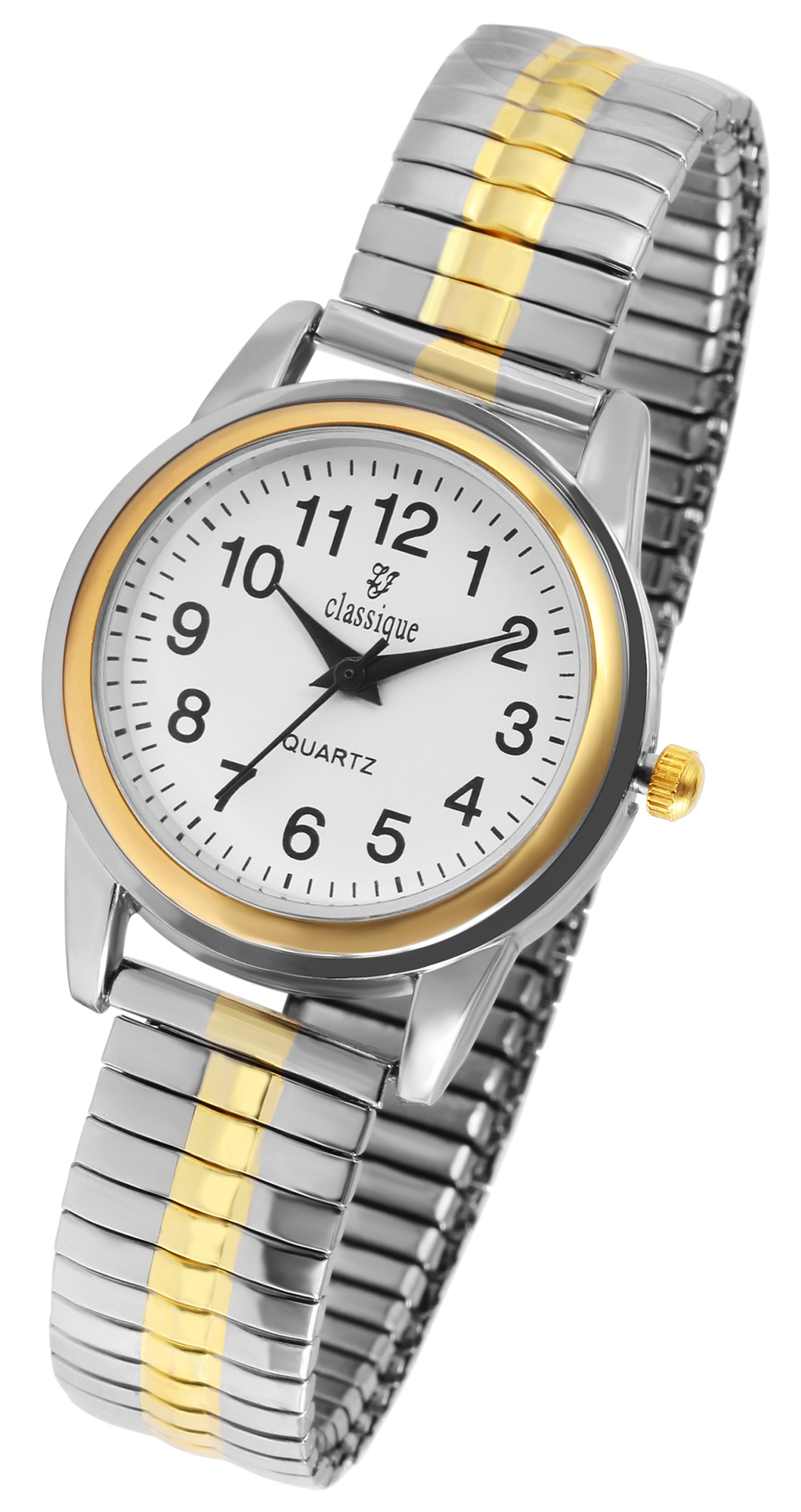 Produktinformationen "Classique Damenuhr mit Edelstahlzugarmband, bicolor/weiß"