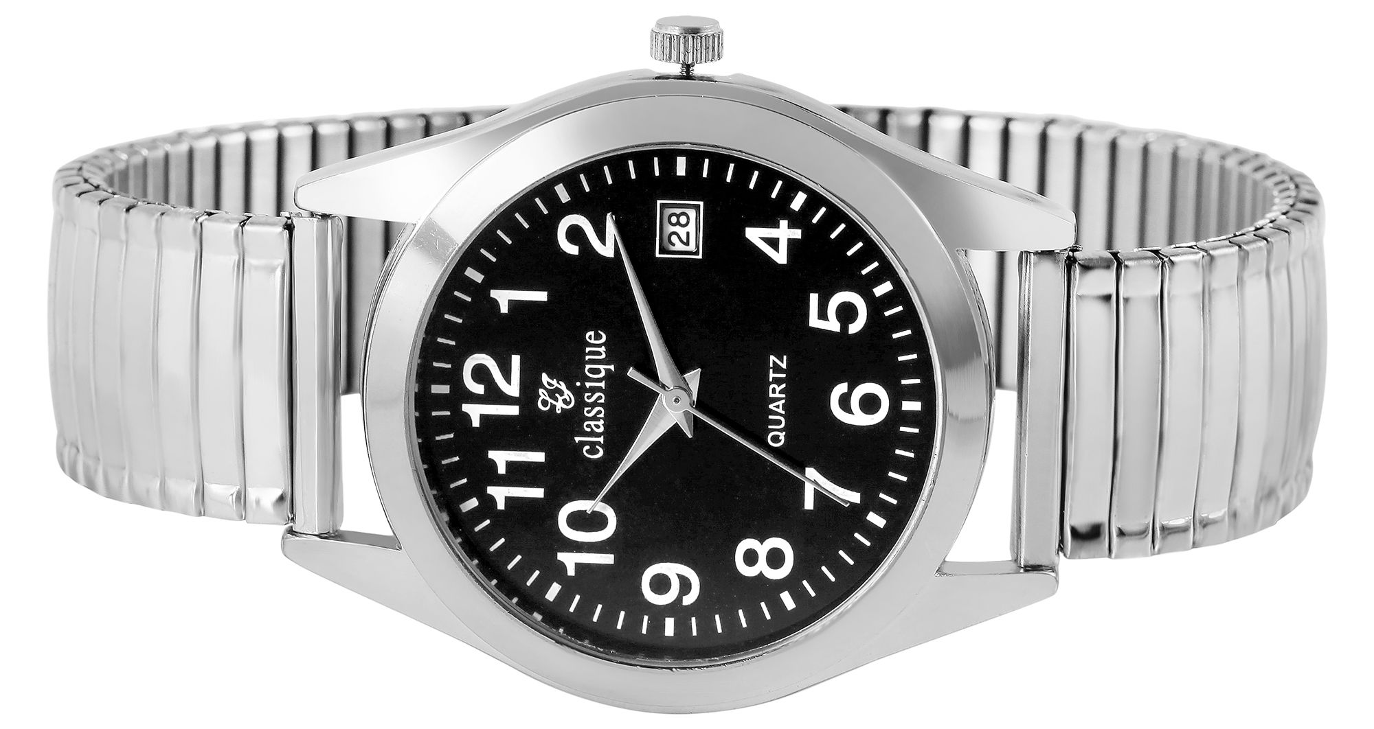 Produktinformationen "Classique Herrenuhr mit Edelstahlzugarmband, Datumsanzeige, silberfarben/schwarz"