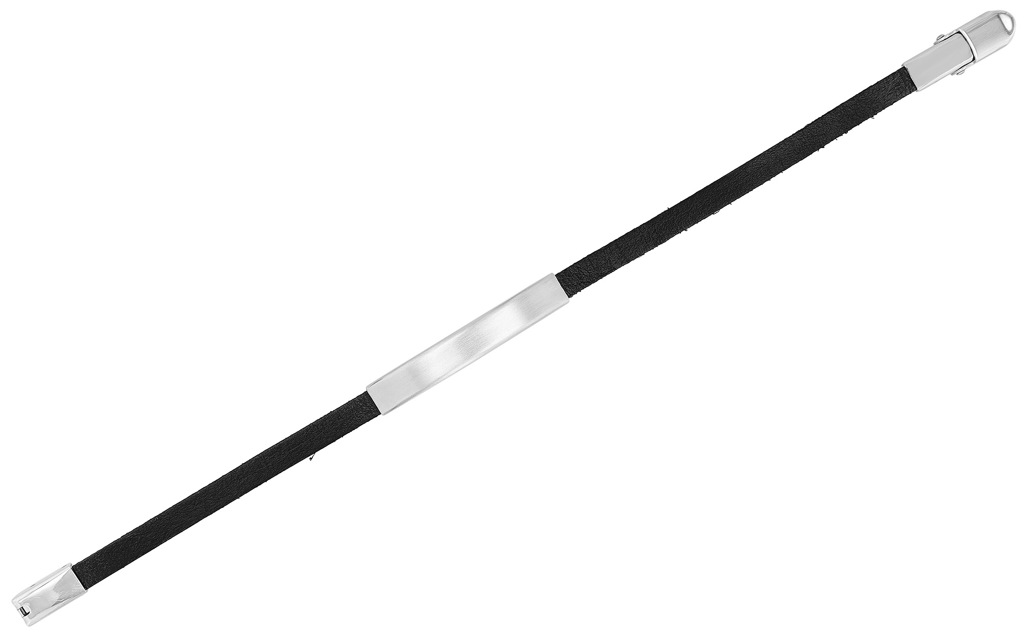 Das Echtlederarmband der Marke Akzent ist aus einem 7 mm breiten Lederriemen gefertigt, der mittig mit einem schlichten silberfarbenen Edelstahlelement verziert ist. Dieses eignet sich hervorragend als Gravurplatte. Die Gesamtlänge des Schmuckarmbandes beträgt 22 cm, die Stärke 5 mm.