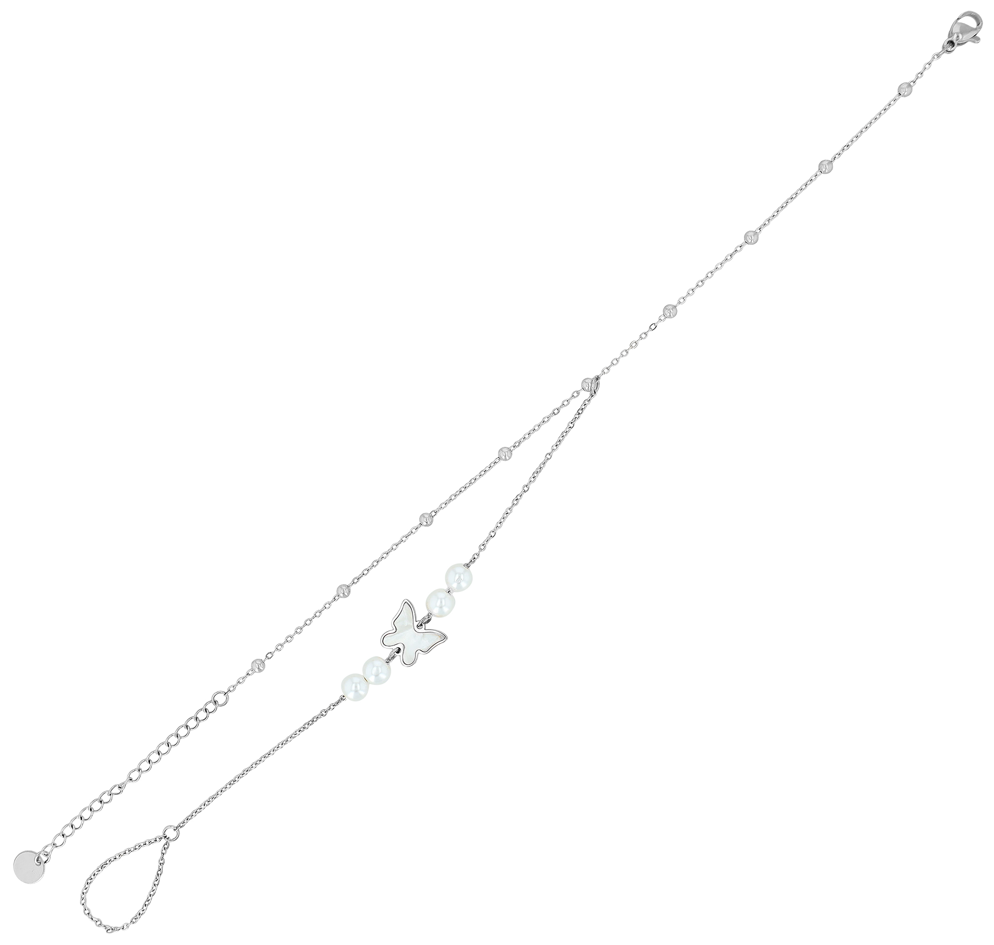 Produktinformationen ""Daisy" Fußkette mit Zehenring, Schmetterling und Perlen, silberfarben, 21 + 5 cm"