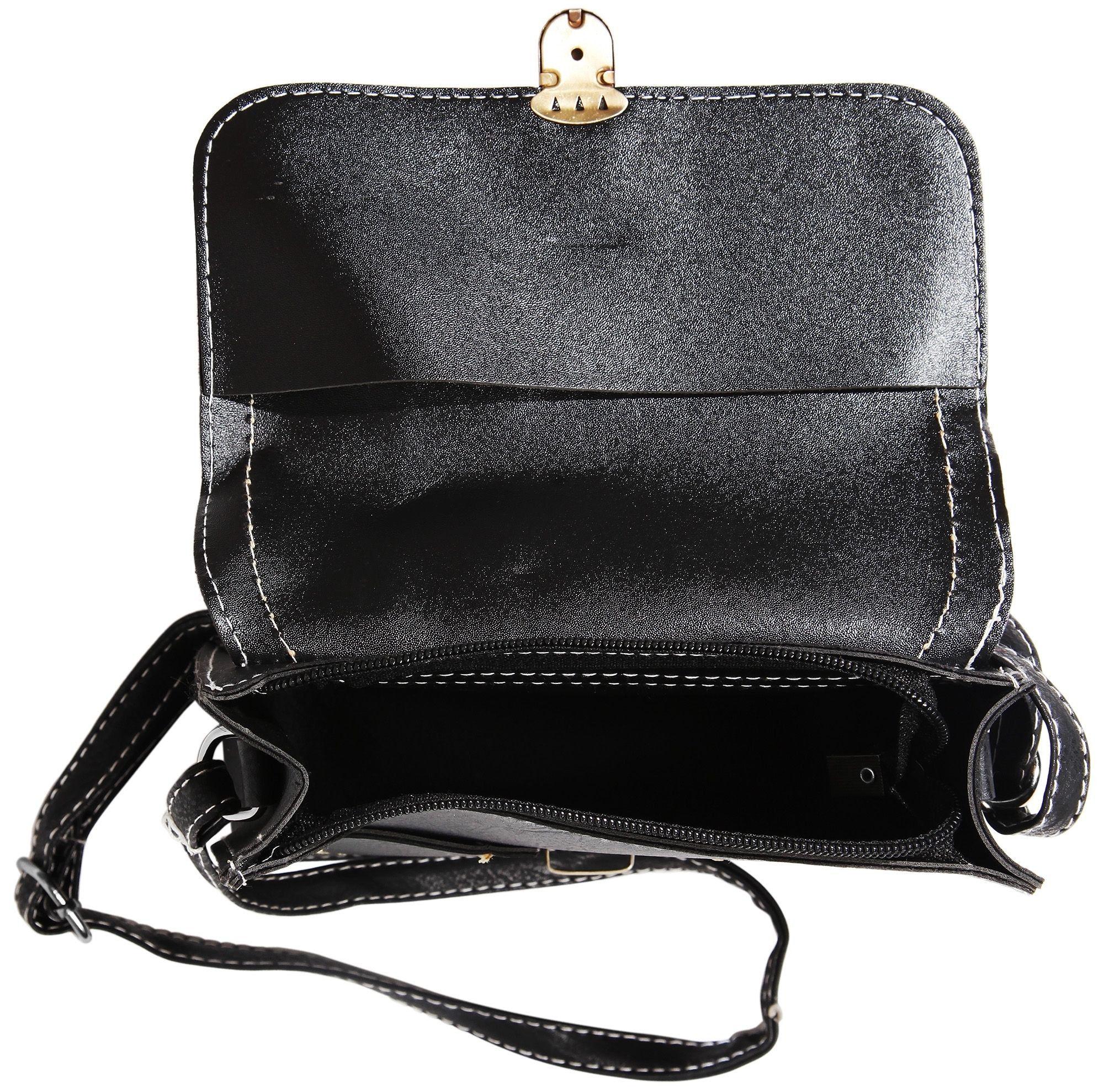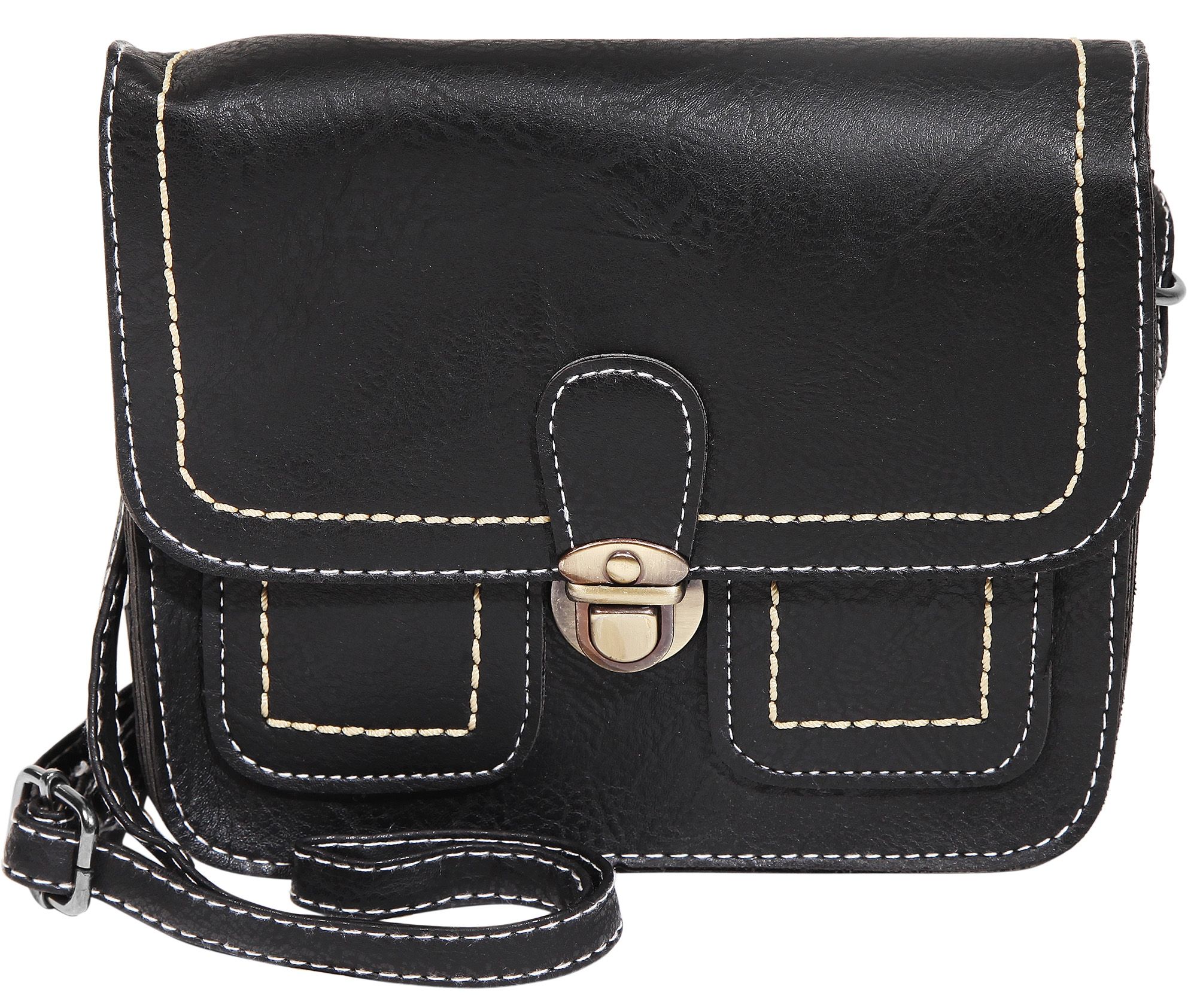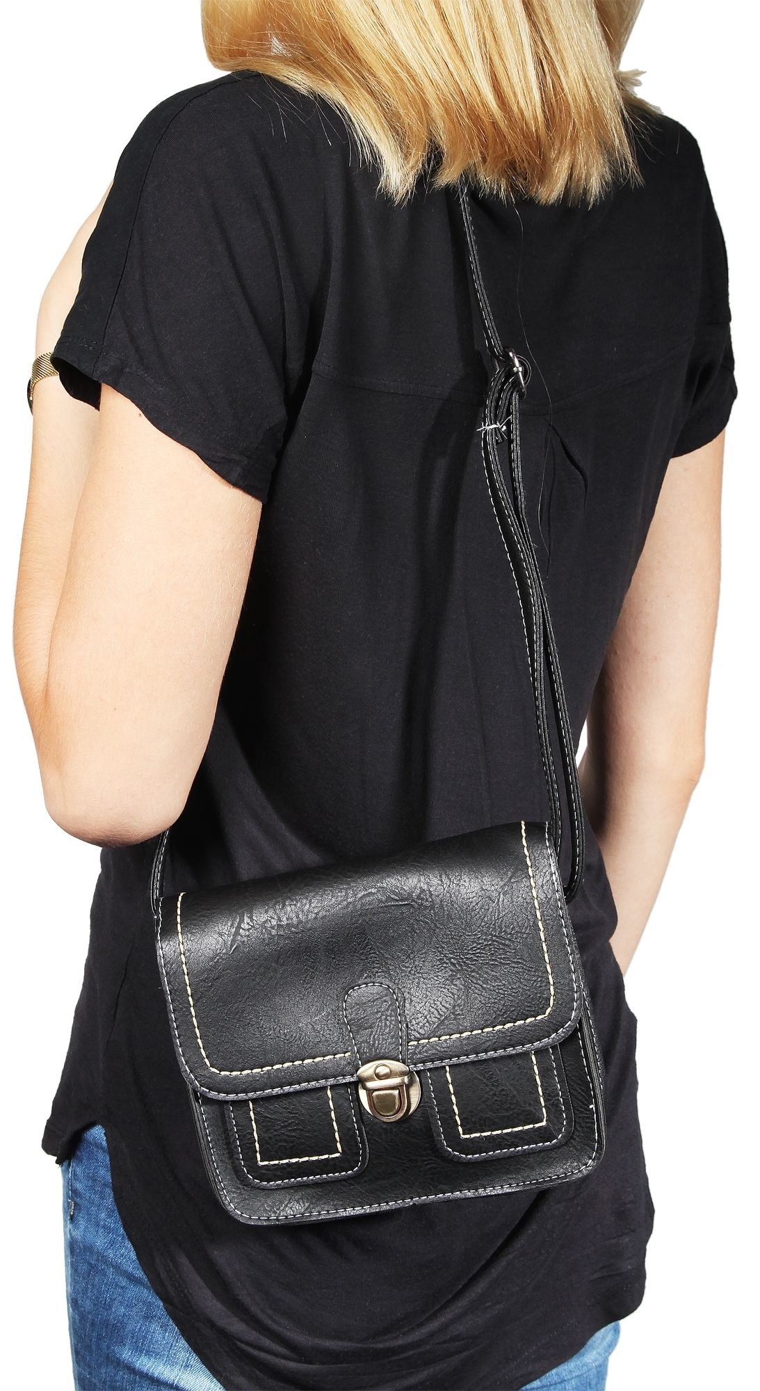 Die kompakte Handtasche ist aus robustem Lederimitat gefertigt und weist eine glatte Oberfläche auf. Die helle Naht im Außen- und Innenbereich sorgt für eine gute Haltbarkeit und Stabilität und setzt sich farblich gekonnt ab. Zudem beinhaltet die Tasche einen langen 13 mm breiten Tragehenkel, der auf eine maximale Länge von ca. 120 cm verlängert werden kann. Die Umhängetasche verfügt über ein geräumiges Innenfach welches mit einem Überschlag und Steckverschluss gesichert werden kann. Zwei weitere kleine Fächer dienen zur Unterbringung von kleinen Gegenständen. Die stilsichere Tasche ist ein modischer Allrounder, der sich zu vielen Gelegenheiten ausführen lässt. Zusätzlich überzeugt hier nicht nur das Design, sondern die Möglichkeit der Aufbewahrung aller wichtigen Gegenstände. Ob für einen gemütlichen Spaziergang, zum Einkaufen oder einen Ausflug - mit dieser Handtasche erhalten Sie einen idealen Gefährten aus robusten Materialien. Die Größe der Tasche ergibt sich im ungefüllten Zustand aus einer Länge von 16 cm, einer Breite von 19,5 cm und einer Materialstärke von 7,5 cm.