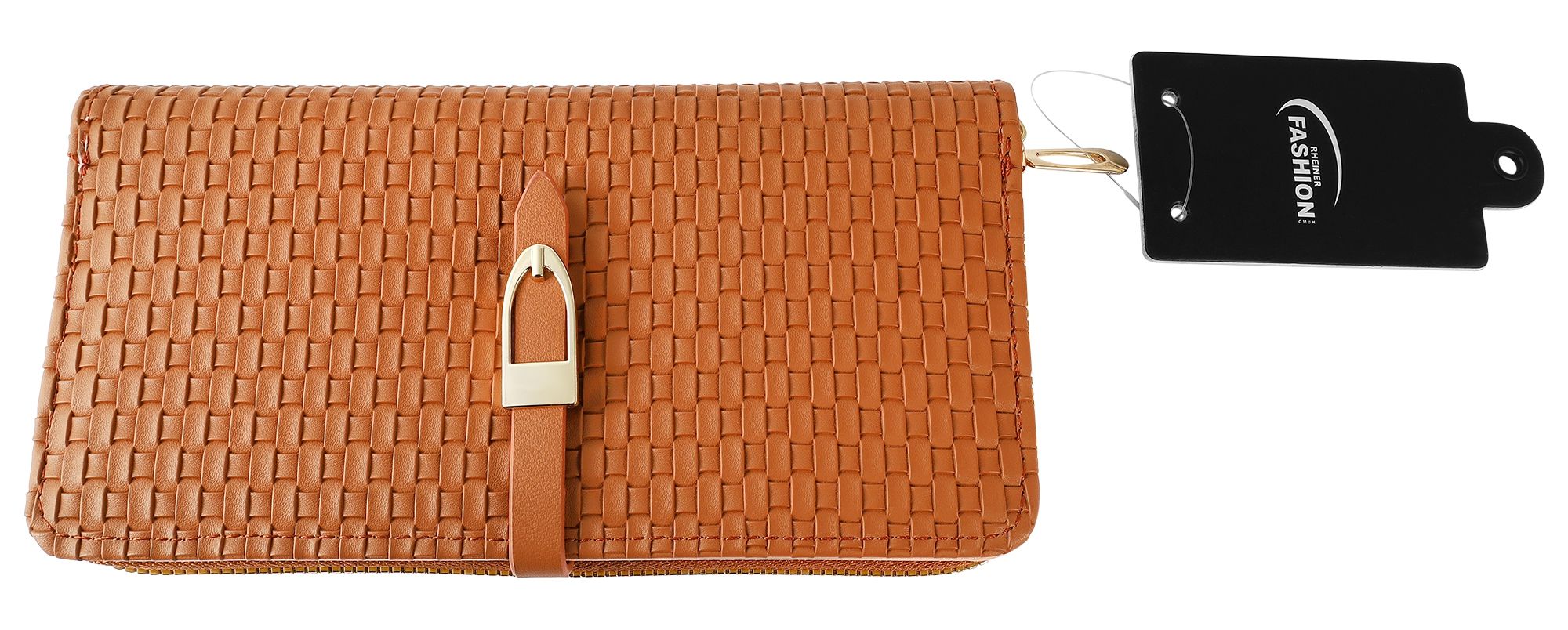 Produktinformationen "Damengeldbörse aus Lederimitat, gewebtes Design, braun"