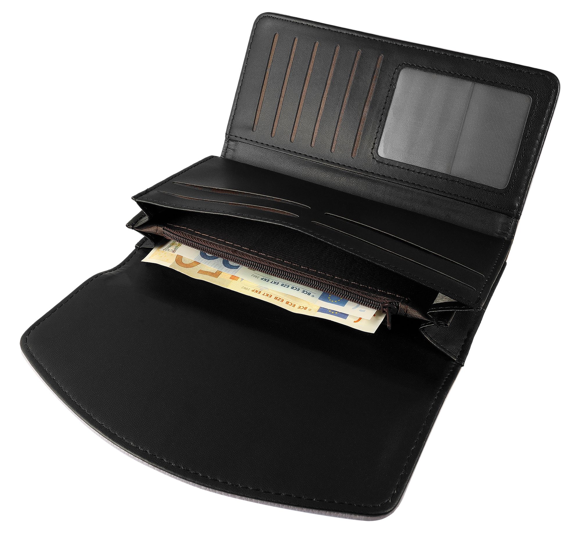 • Zwei Fächer für Scheine