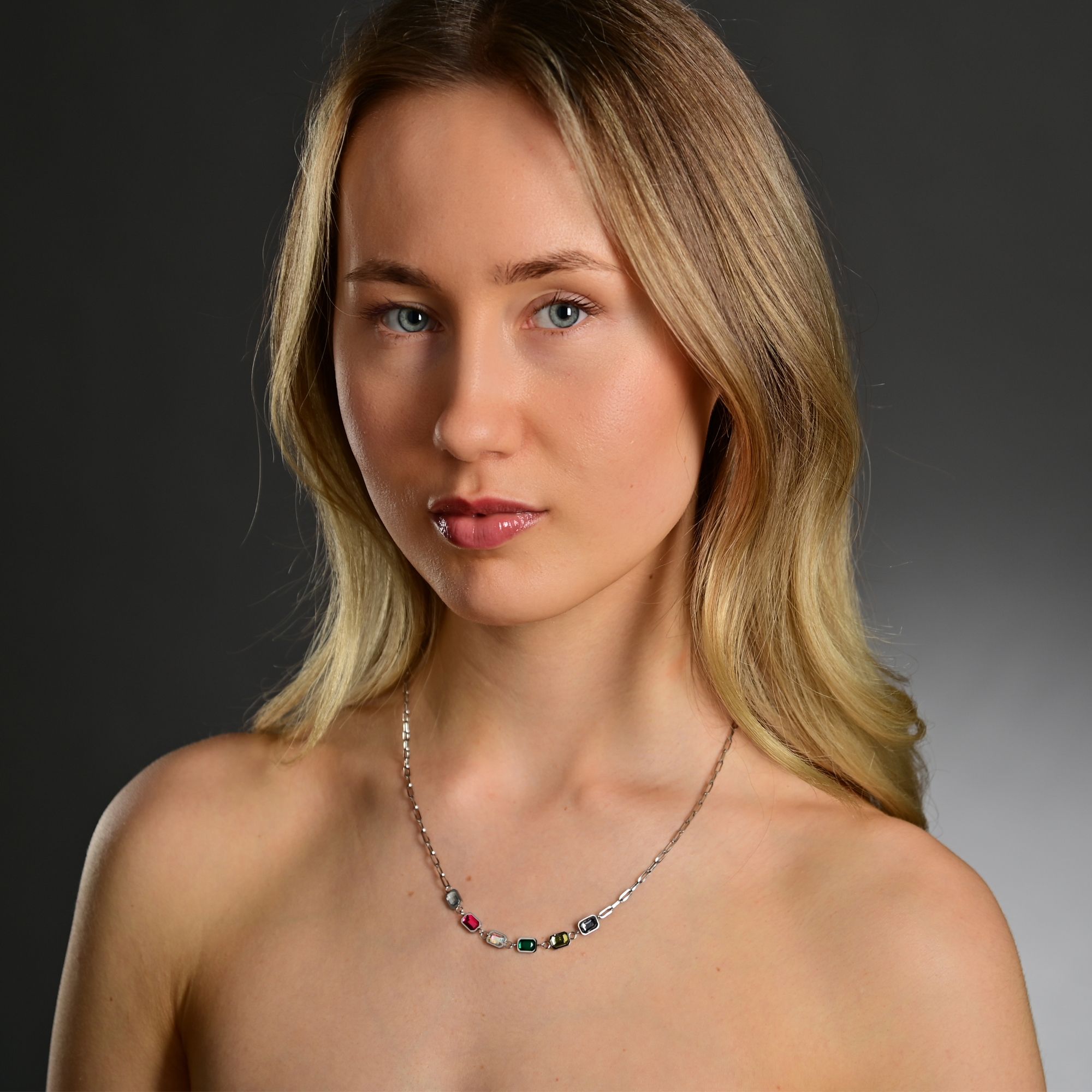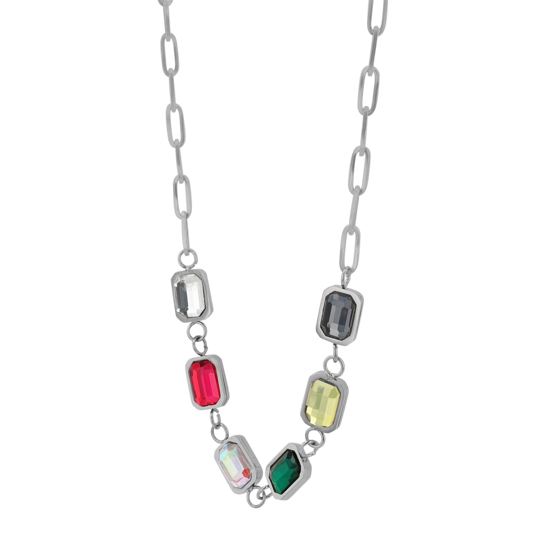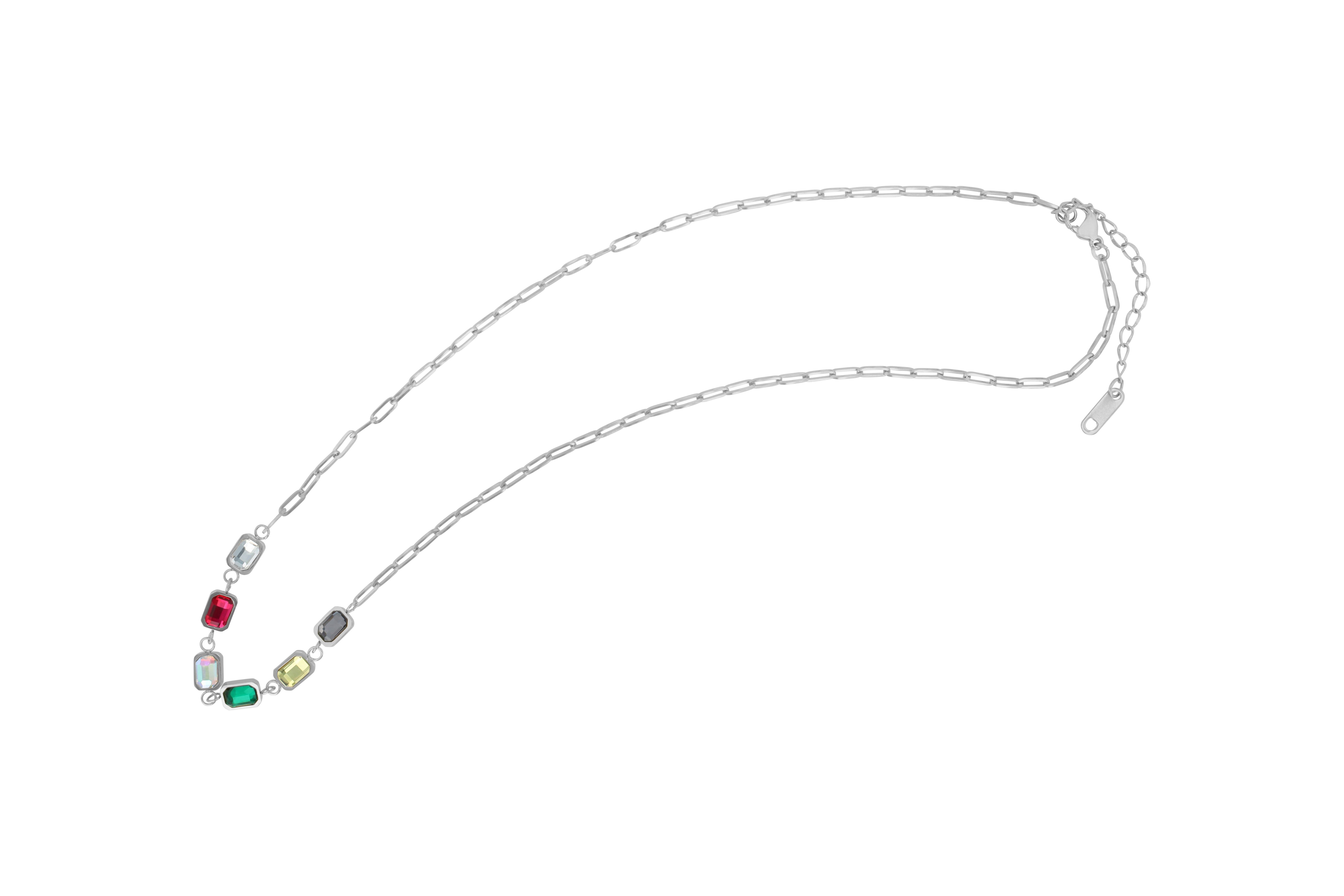 "Defne" Edelstahlkette mit Anhänger, bunten Zirkonia Steinen, 44+5cm, silberfarben und goldfarben
