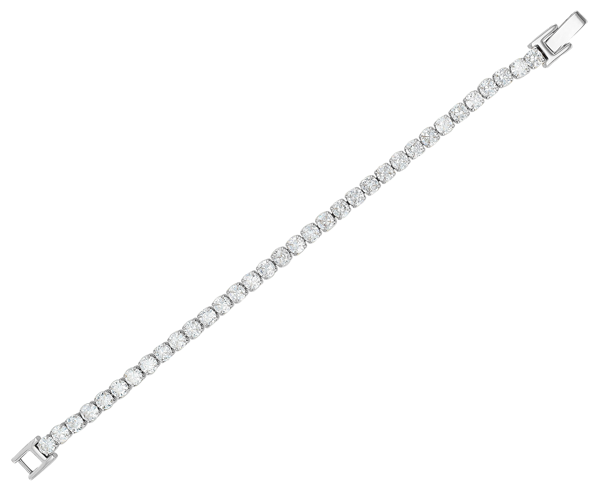 Die zahlreichen aneinander gereihten, weißen Zirkonia-Steine, die in einer 4er-Krappenfassung gefasst sind, verleihen dem Armband einen luxuriösen Glanz.