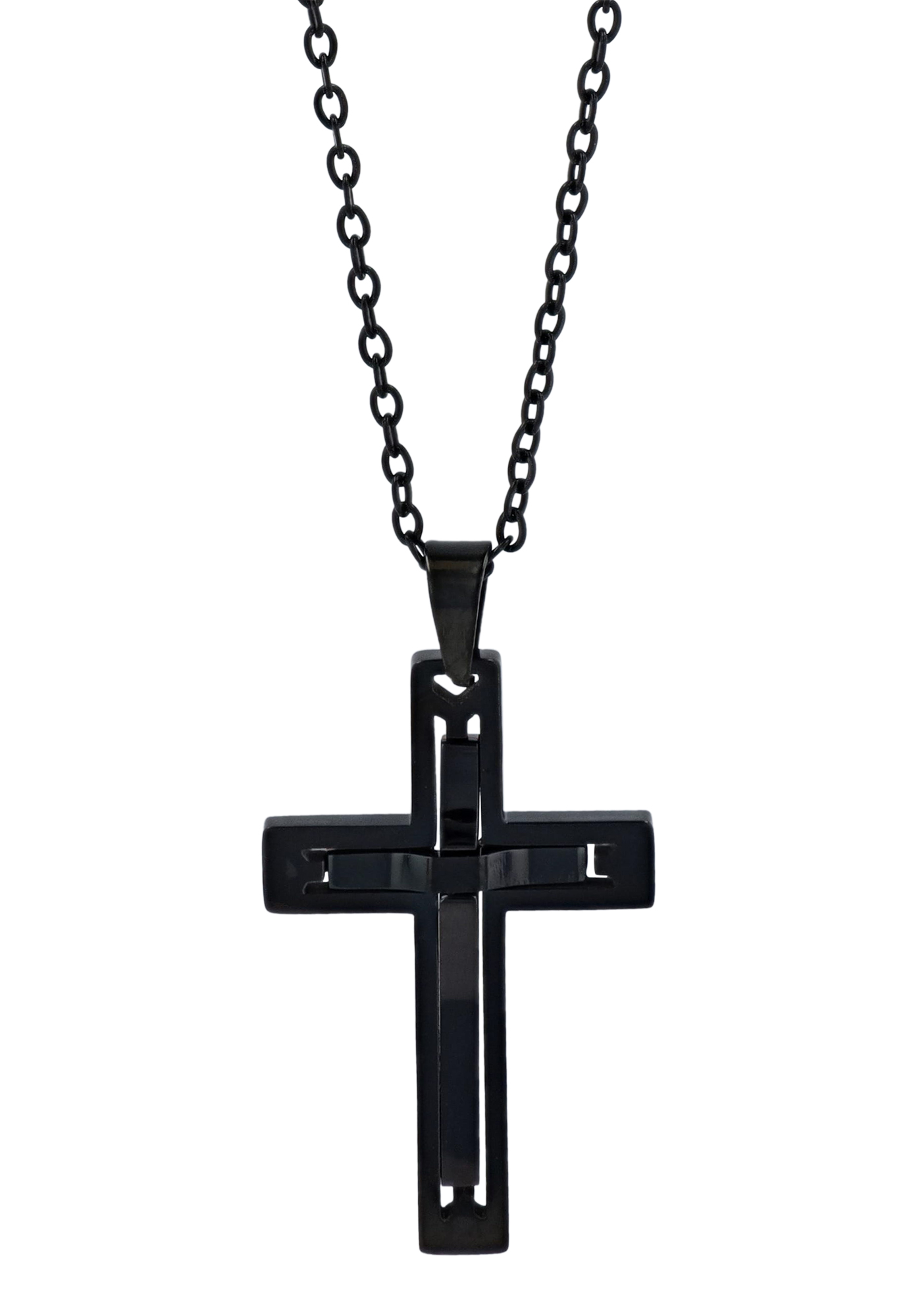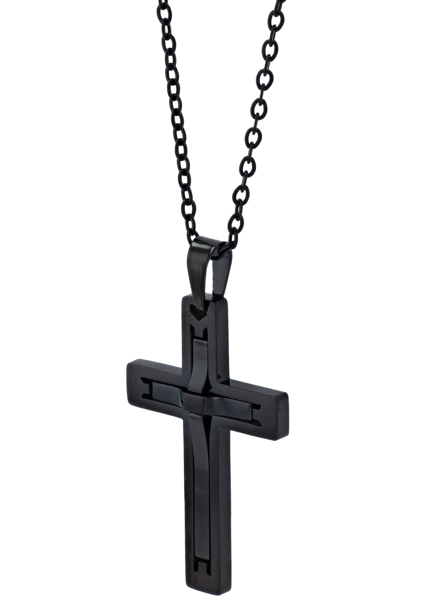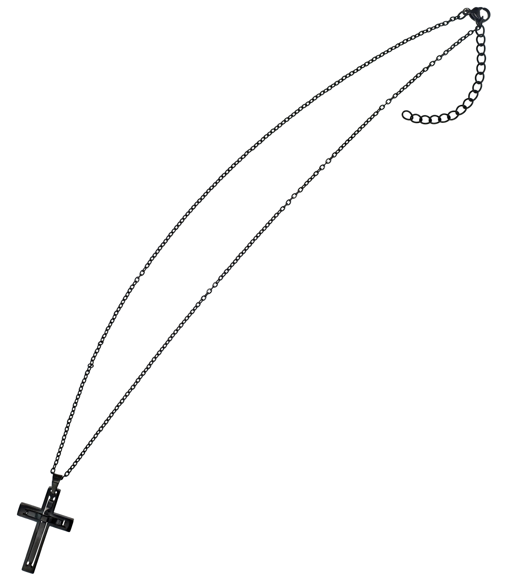 Produktinformationen ""Devin" Edelstahlkette (Ankerkette) mit Anhänger, Kreuz 43 + 3 cm, schwarz"