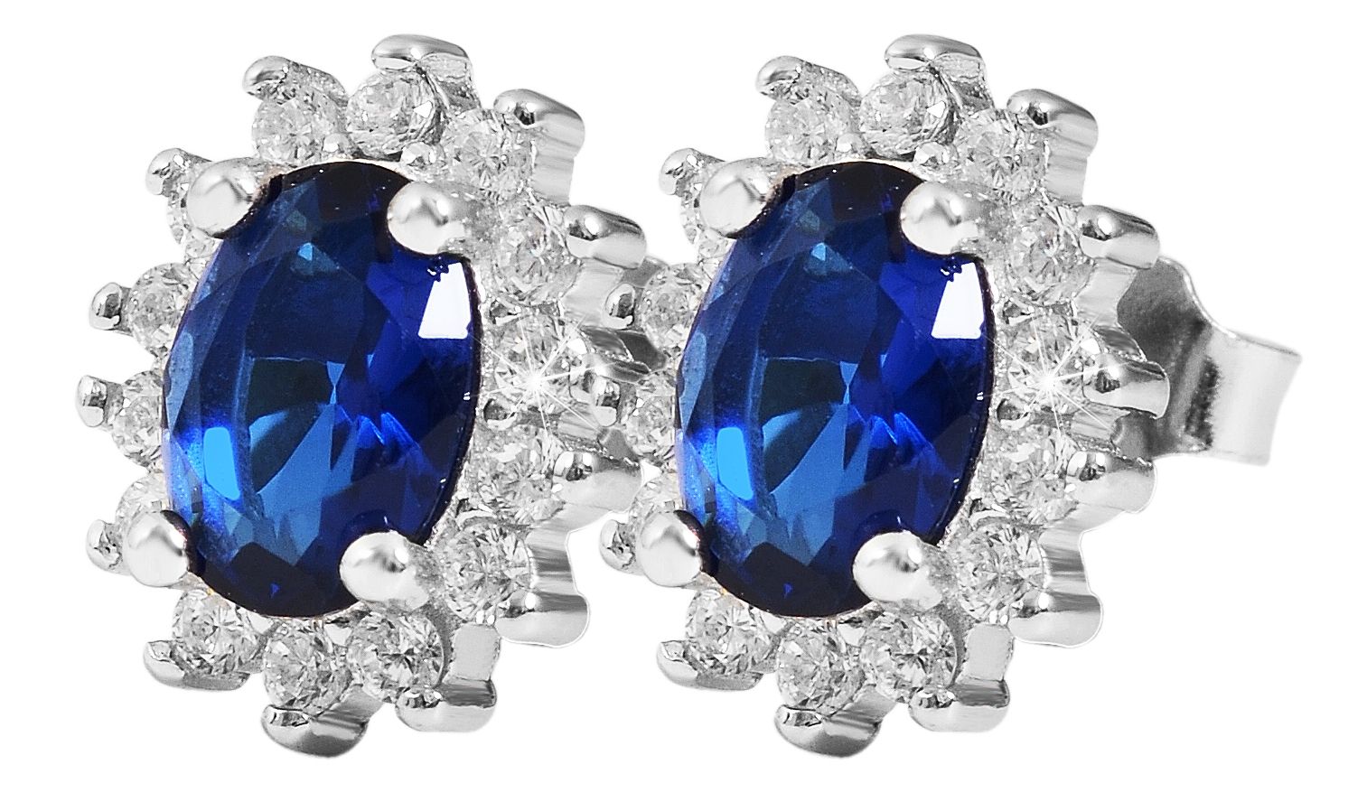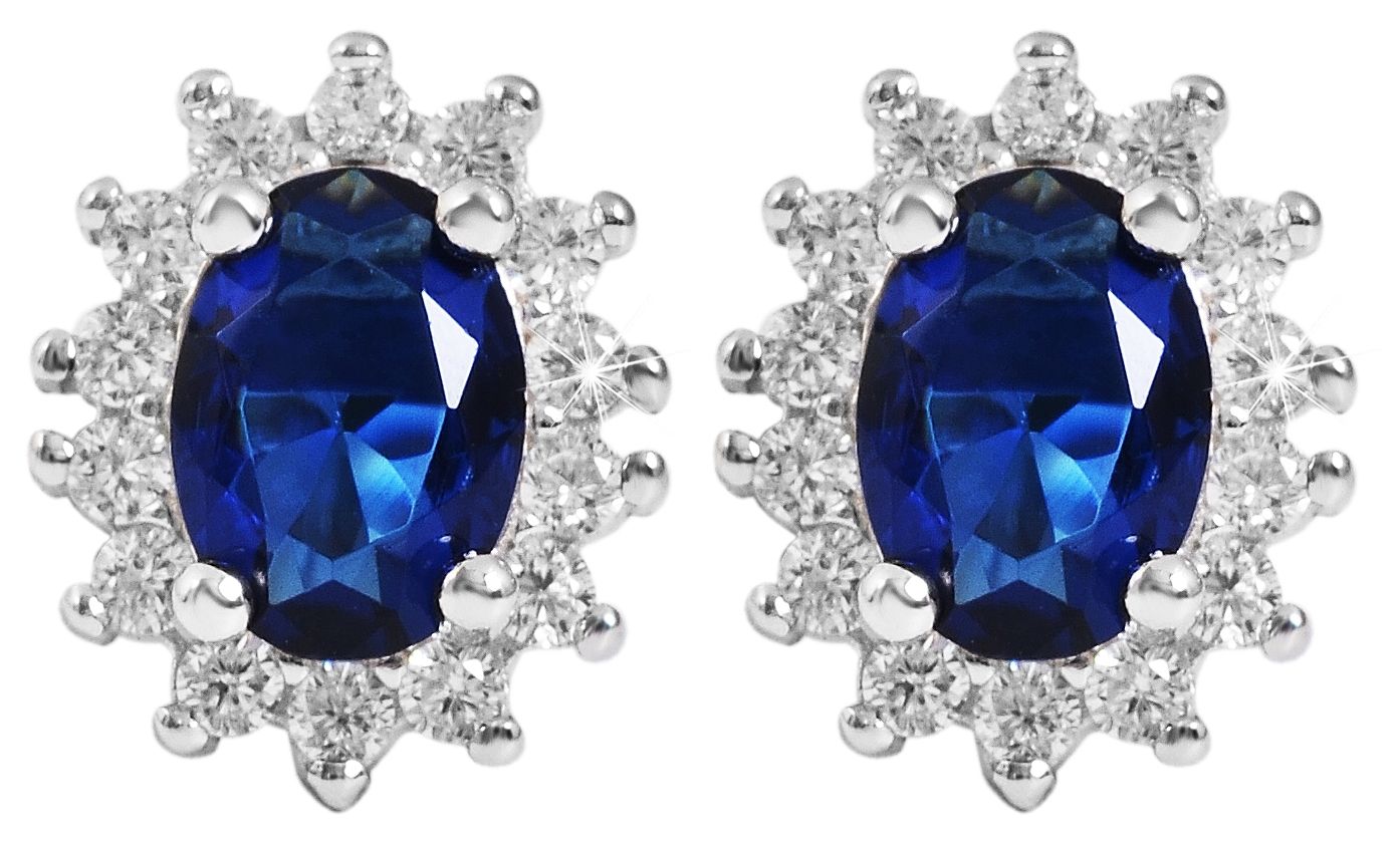 Produktinformationen ""Diana" 925/- Echt Silber Ohrstecker, Zirkoniasteine in Krappenfassung, blau, silberfarben rhodiniert"