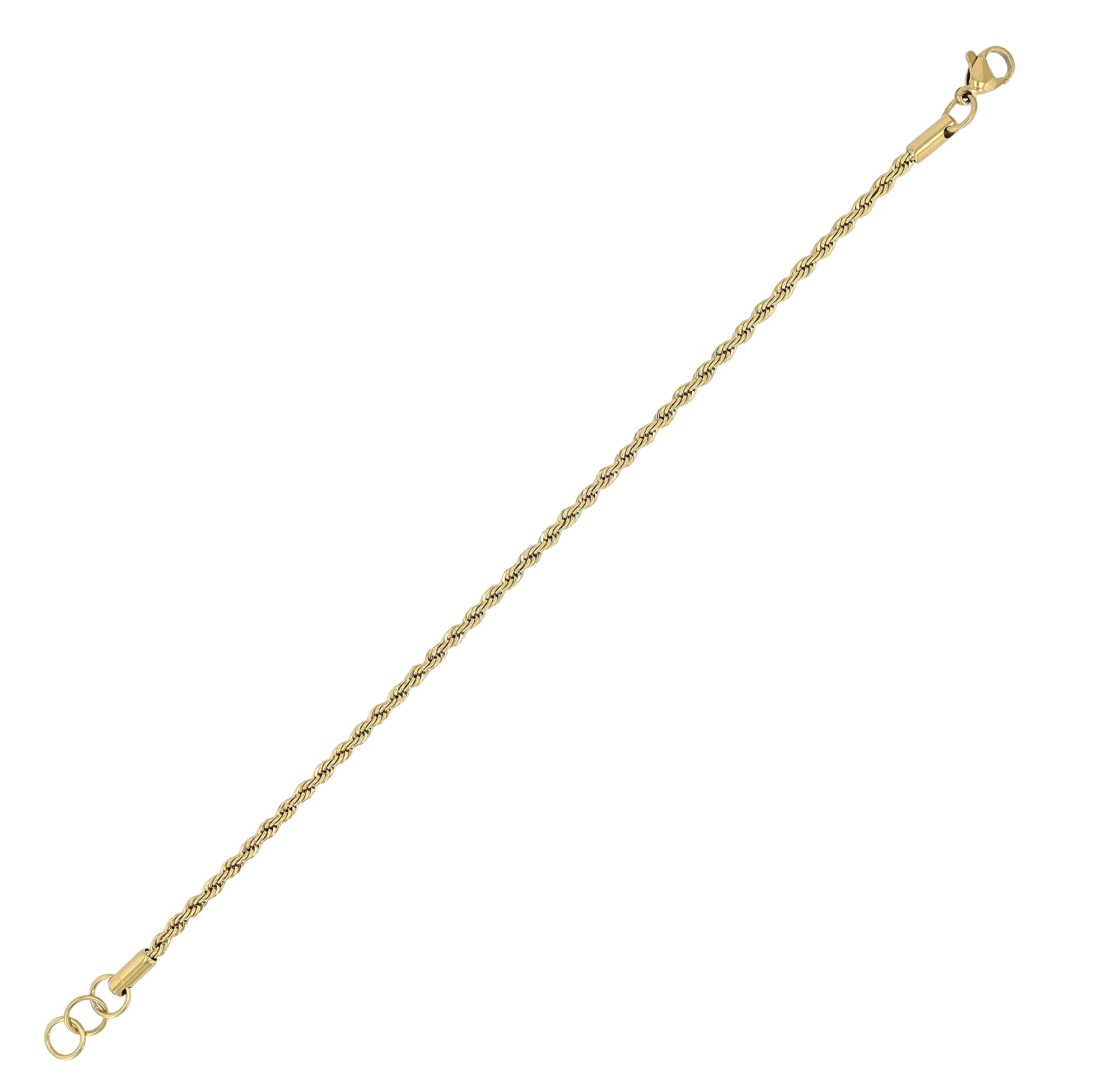 Das goldfarbene Armband der Marke Akzent ist im Kordelmuster gefertigt und aus Edelstahl hergestellt. Bei dieser Kettenart werden drei Kettenstränge miteinander verknüpft, sodass sie die charakteristische Spiralform erhalten. Öffnen und schließen lässt sich das elegante Damenarmband mit einem praktischen Karabinerhaken, der ebenfalls aus Edelstahl besteht. Die Maße ergeben sich aus einer Länge von 18 cm und einer Stärke von 2 mm. Zudem verfügt das Armband über ein 2 cm langes Verlängerungskettchens, sodass in der Länge variiert werden kann. Das Schmuckarmband ist ein schönes Accessoire zu jedem Anlass und eignet sich gut als Geschenk.