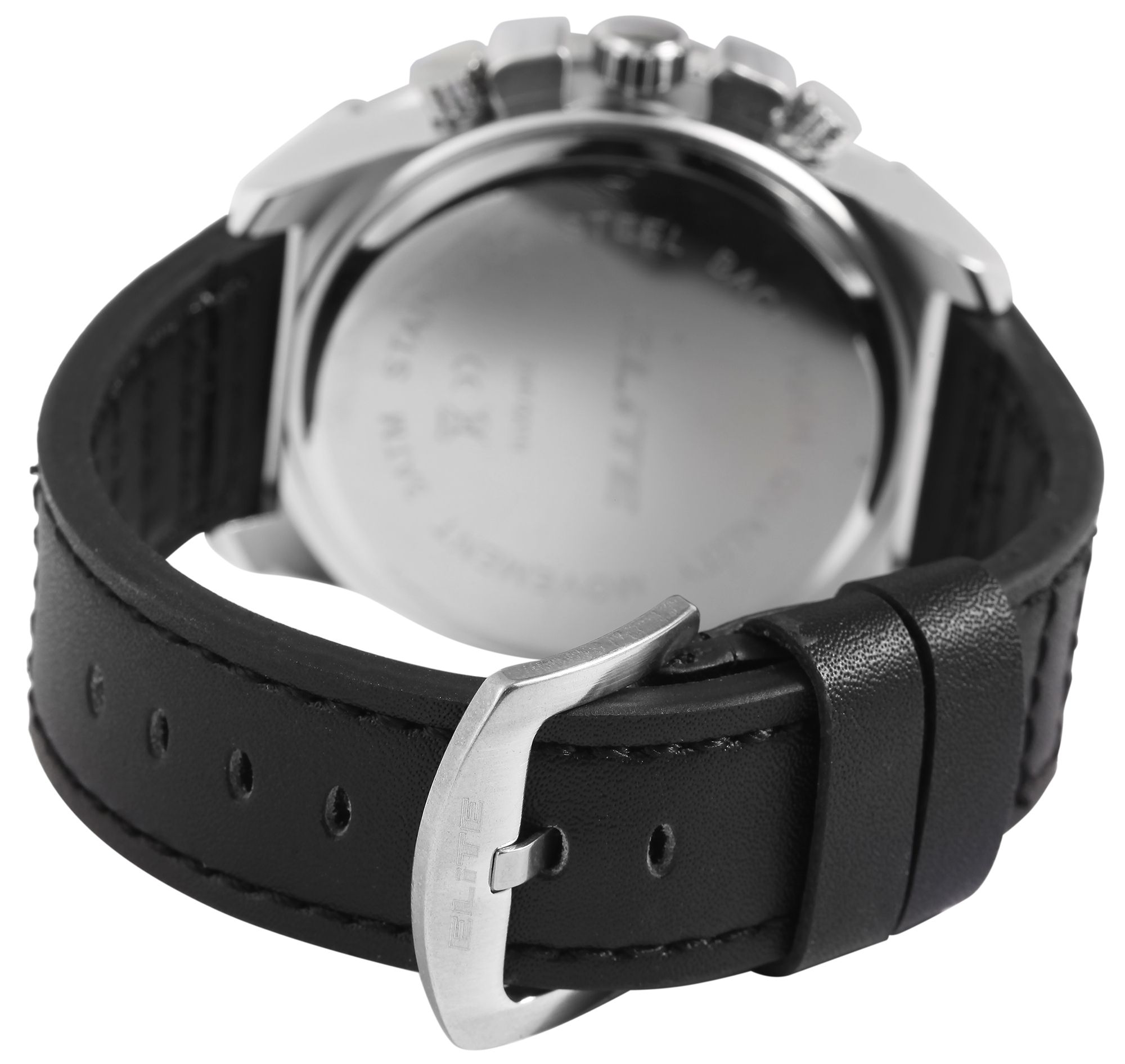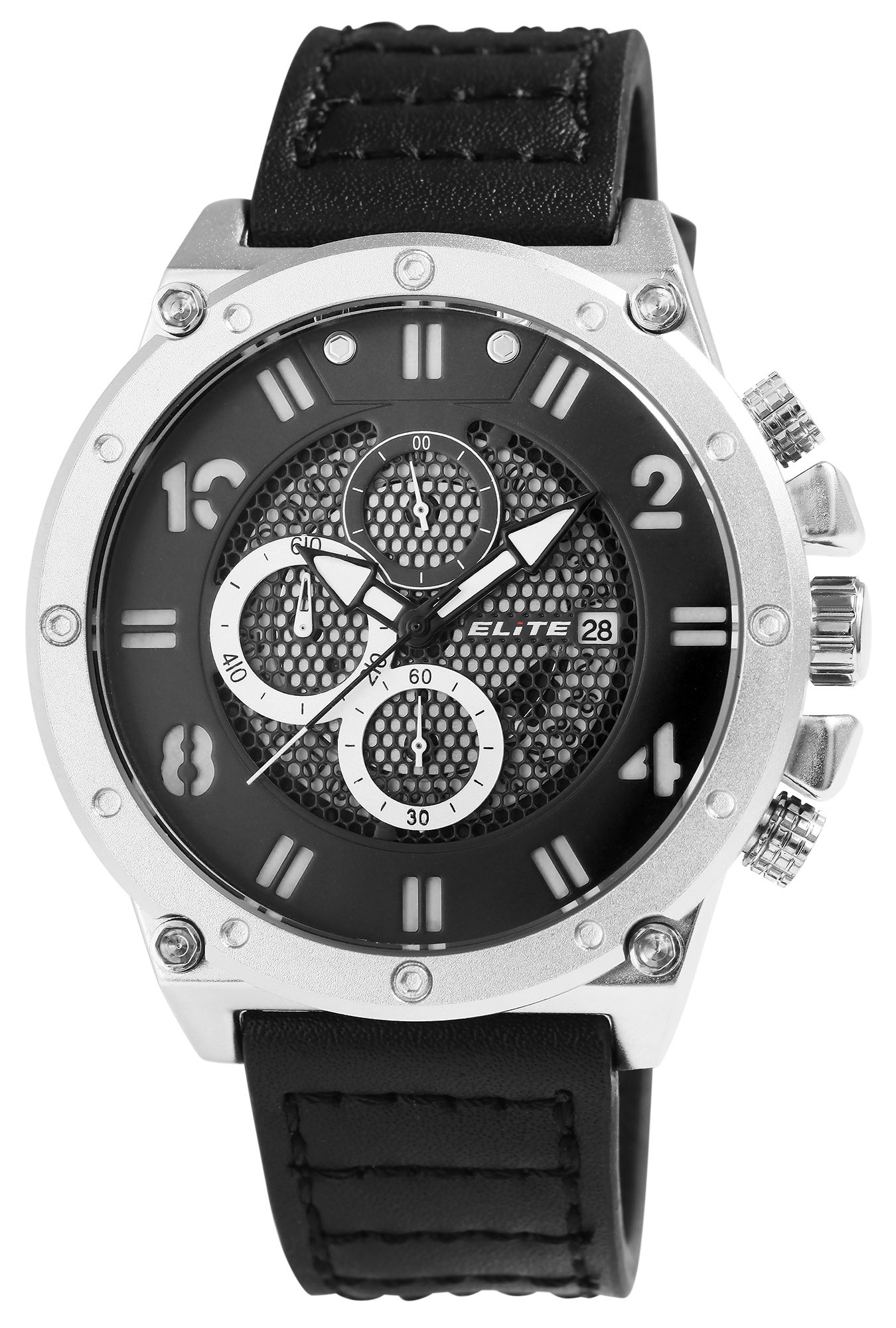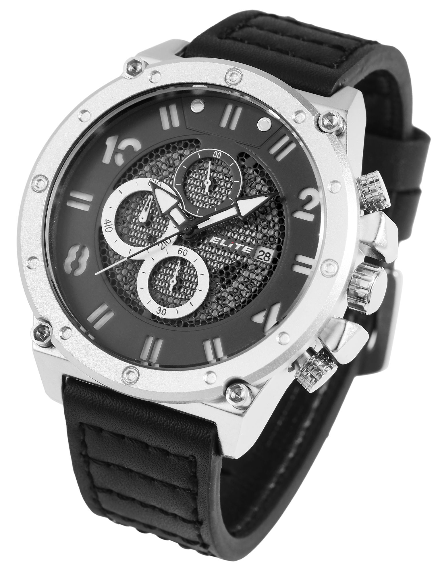 Produktinformationen "ELITE Herrenchronograph mit Echtlederarmband, schwarz/silberfarben"