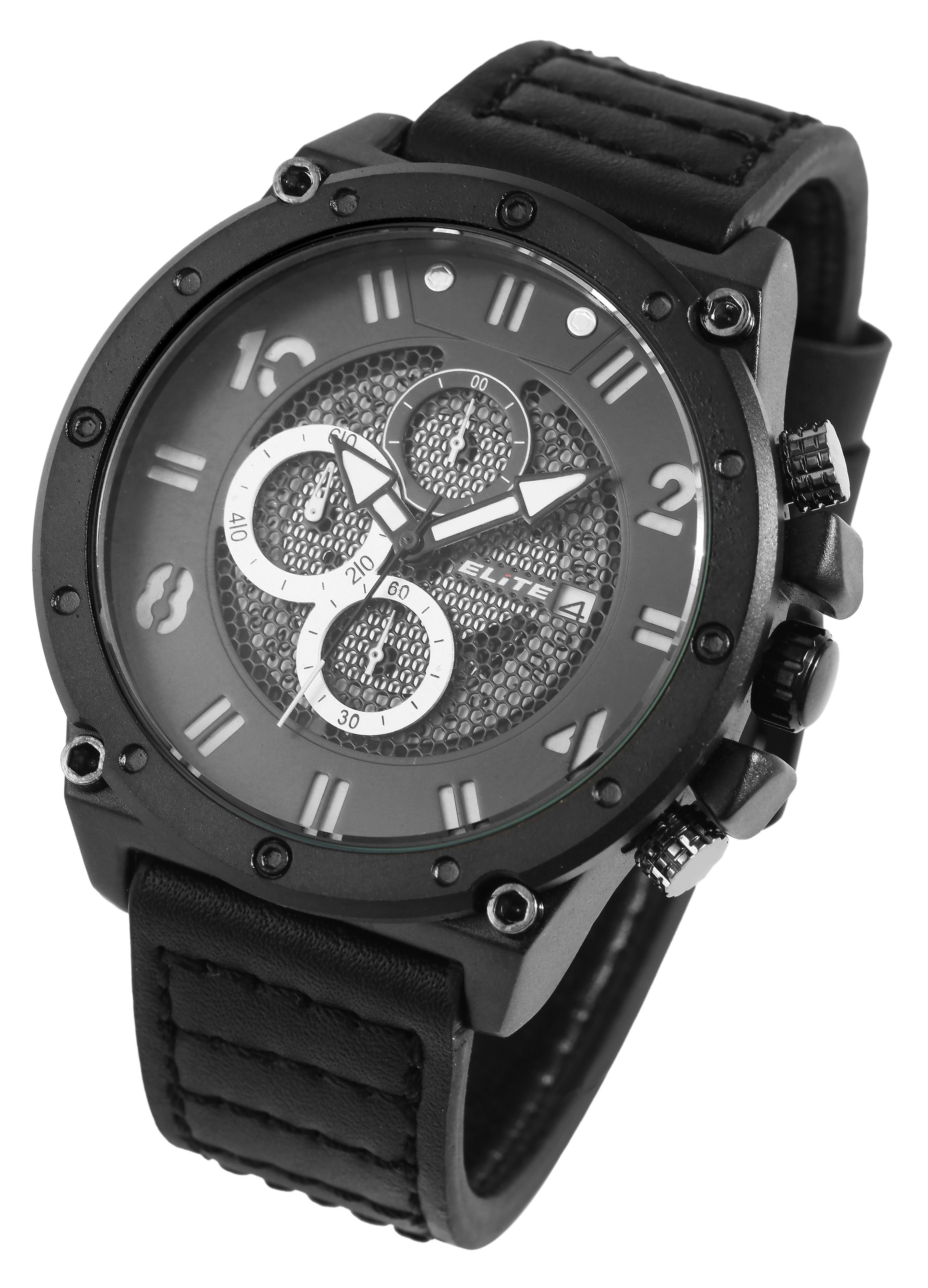 Produktinformationen "ELITE Herrenchronograph mit Echtlederarmband, schwarz"