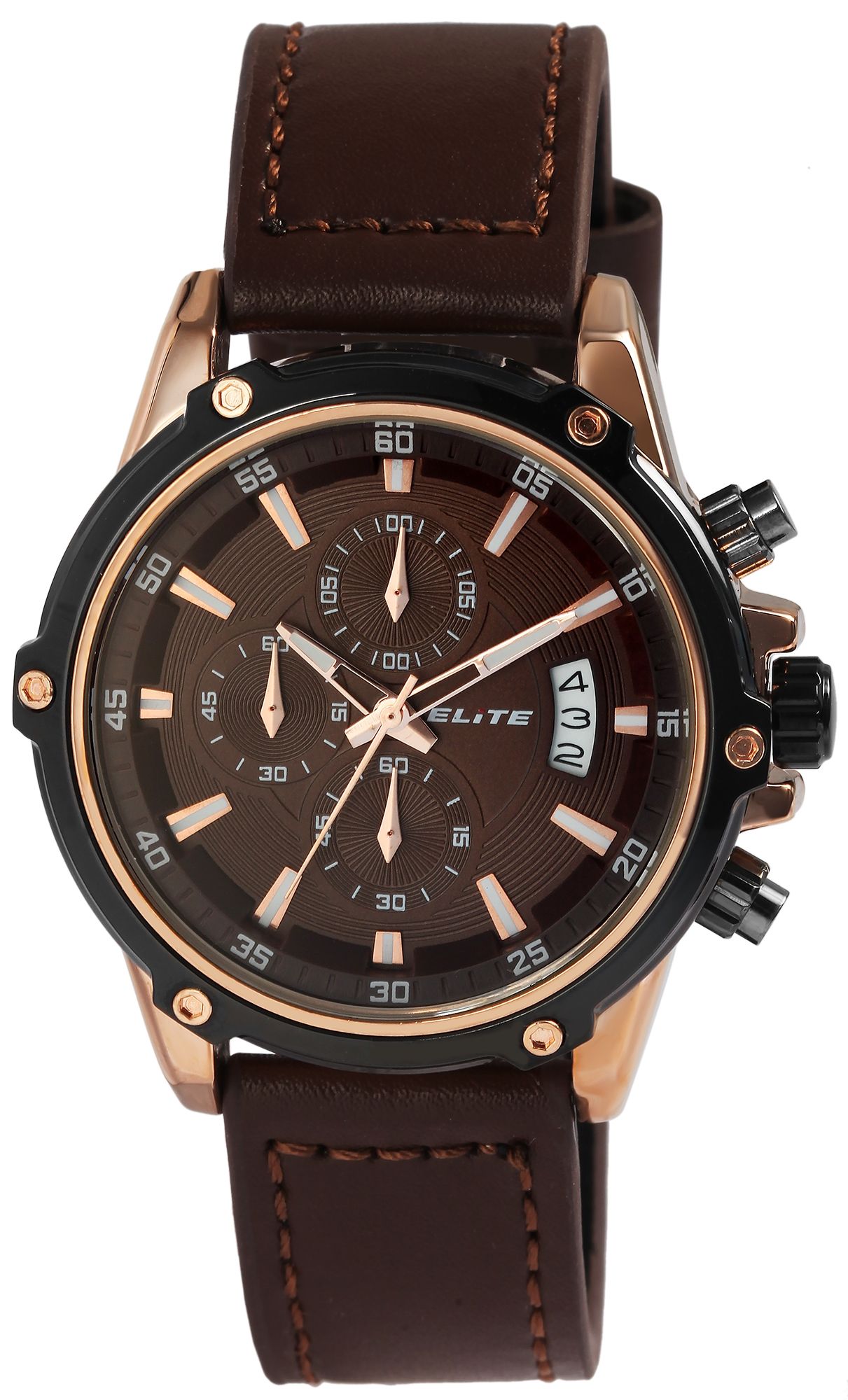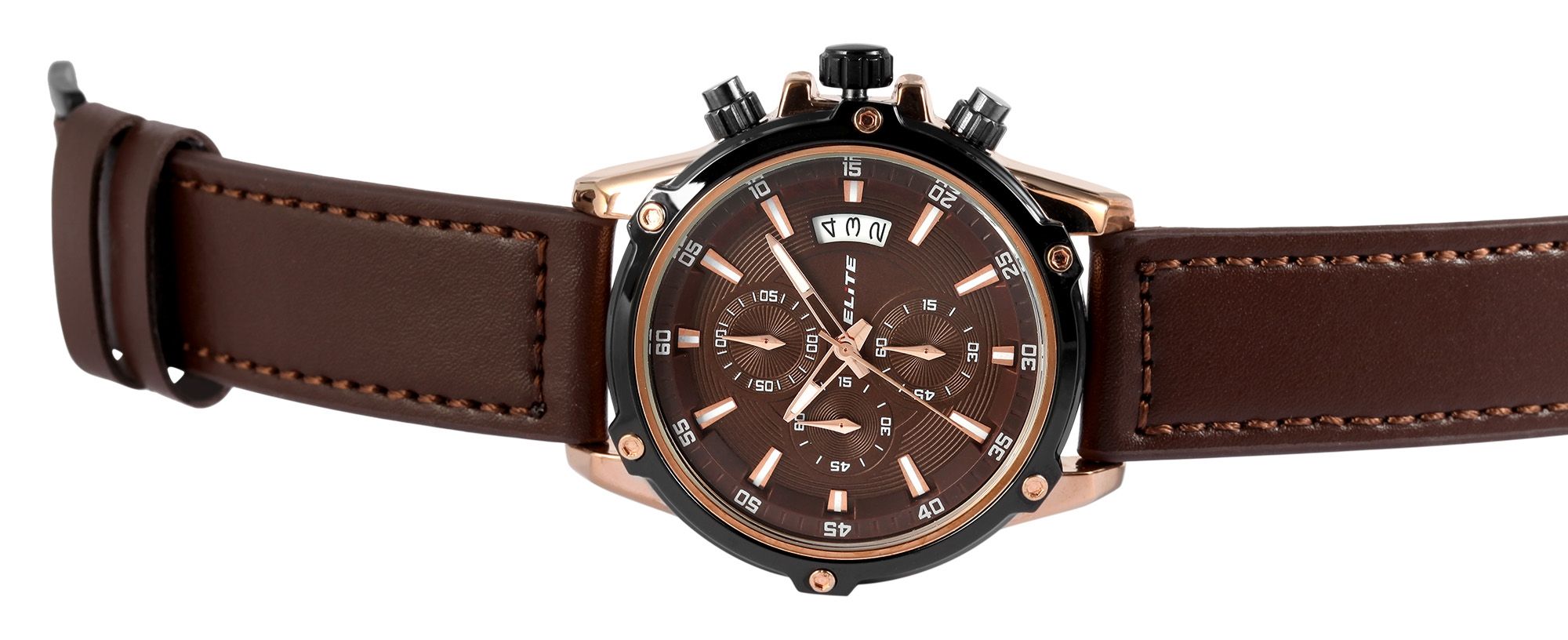 ELITE Herrenchronograph mit Echtlederband, braun