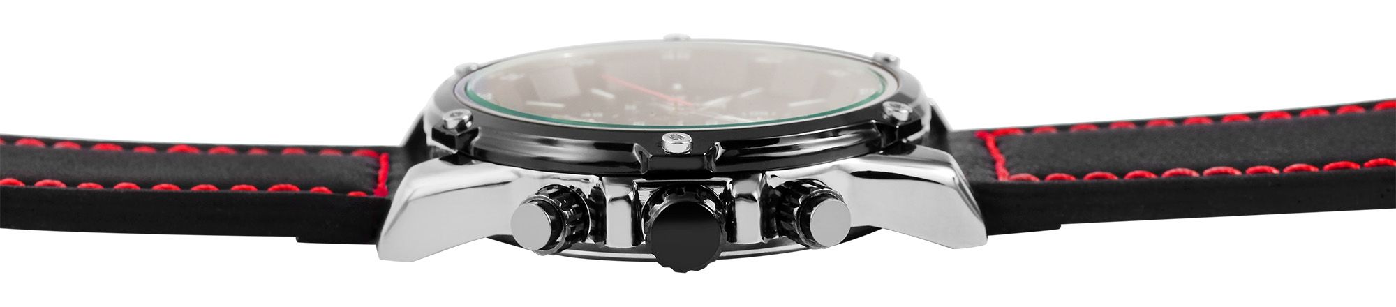 ELITE Herrenchronograph mit Echtlederband, schwarz/rot