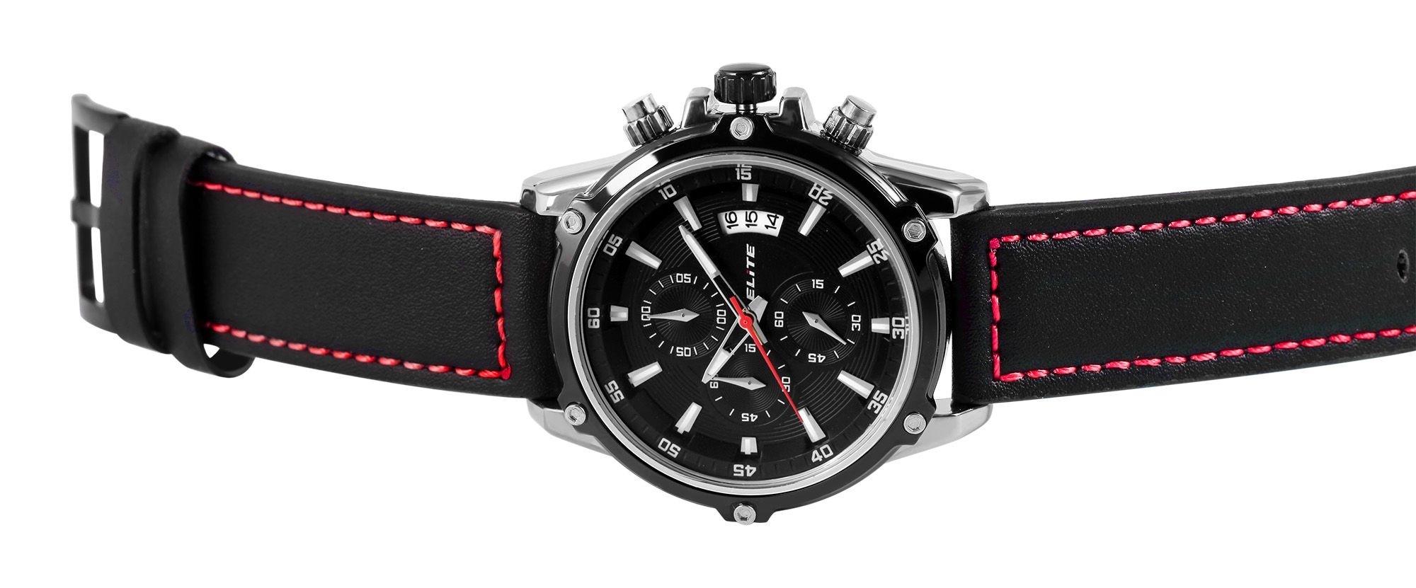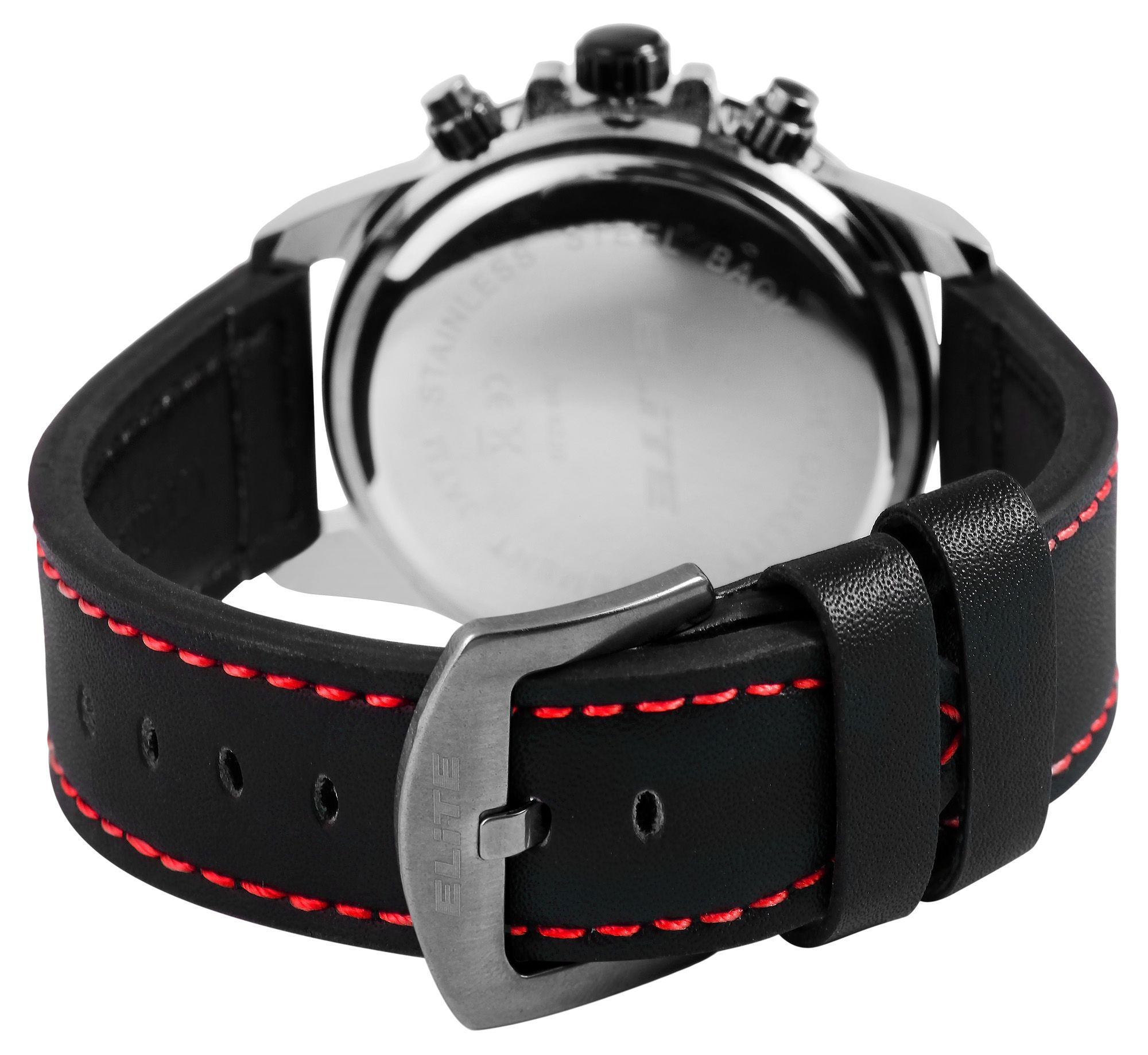 Produktinformationen "ELITE Herrenchronograph mit Echtlederband, schwarz/rot"