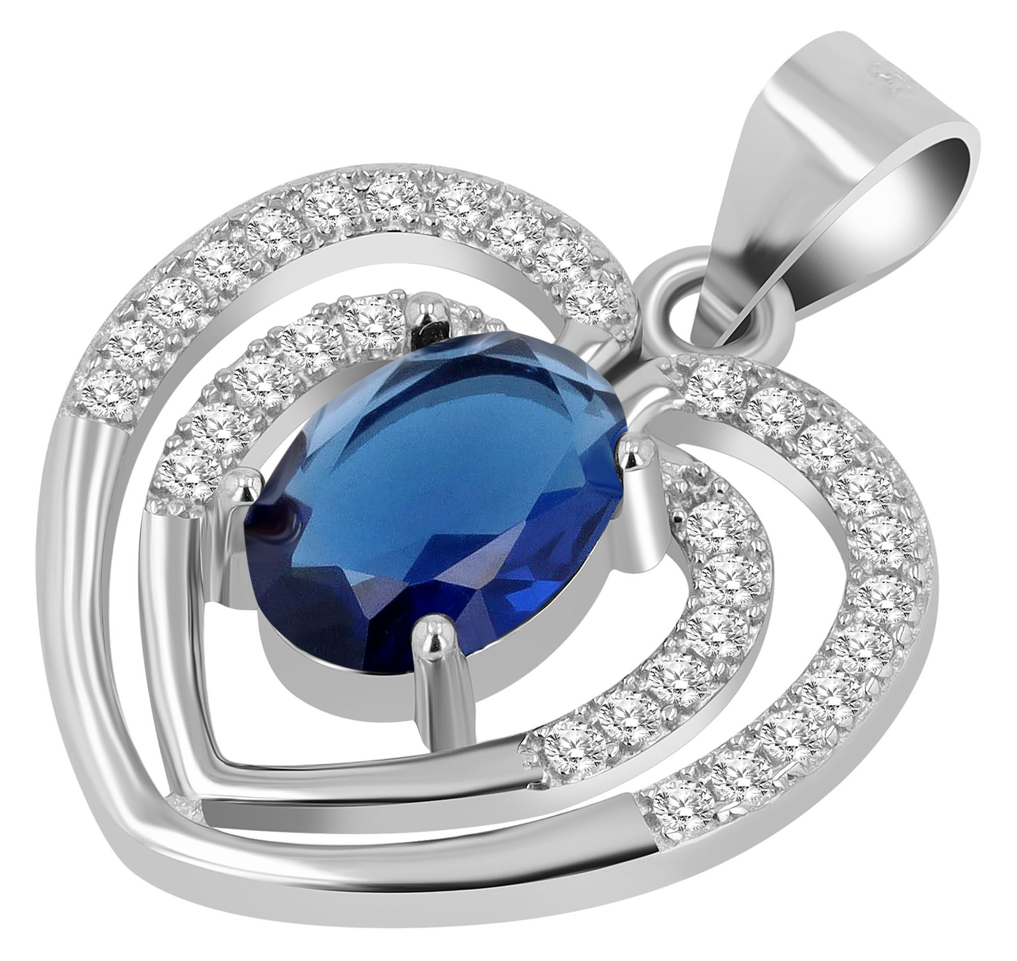 Produktinformationen "Echt Silber Anhänger Herz "Tilla" mit Zirkonia rhodiniert, blau"