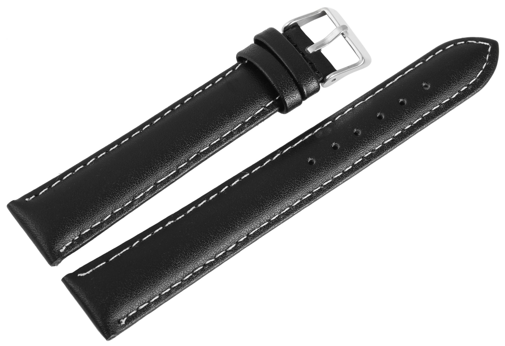 Produktinformationen "Echtleder-Uhrenarmband, Edelstahl Dornschließe, schwarz mit weißer Naht, 12 mm"