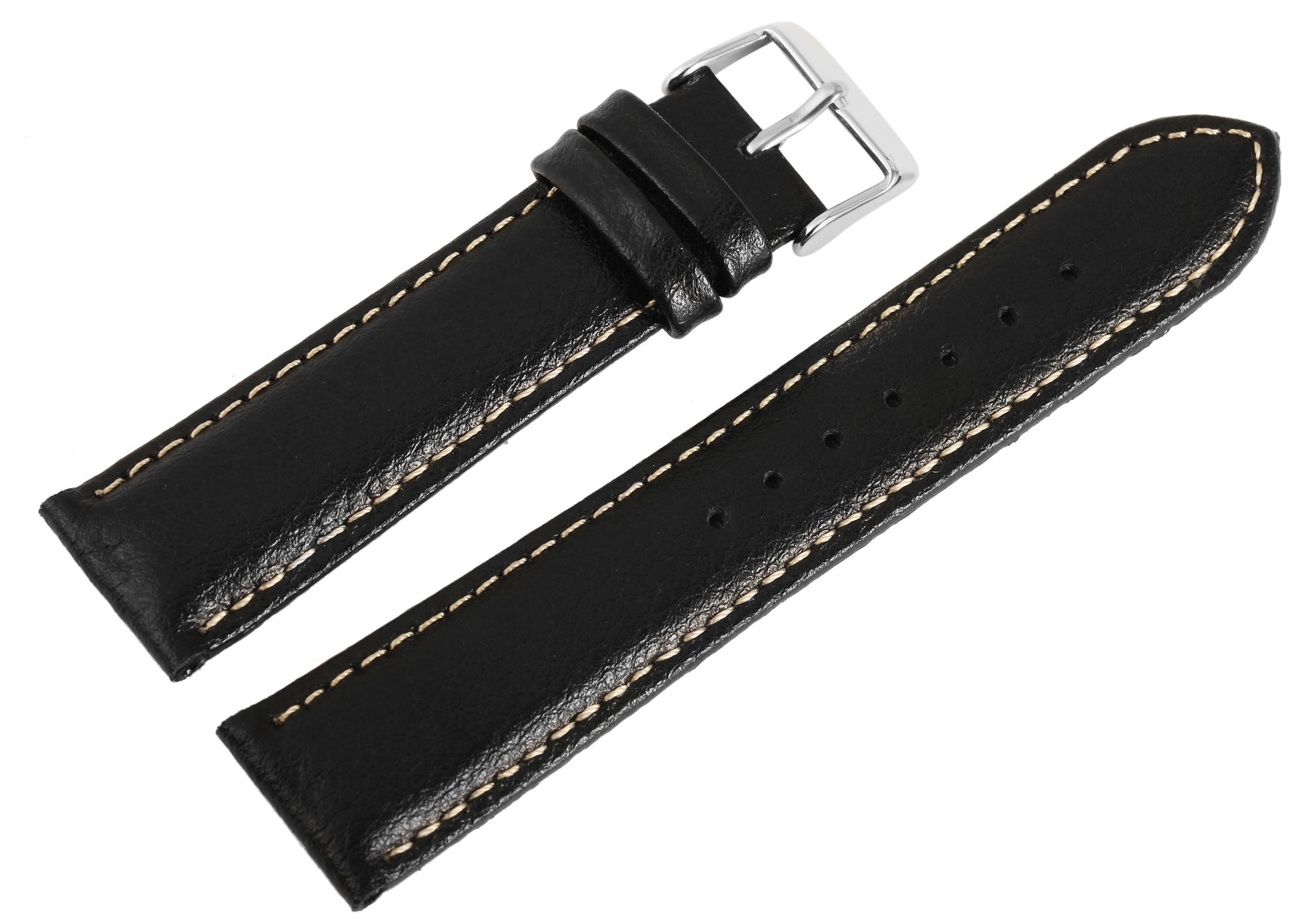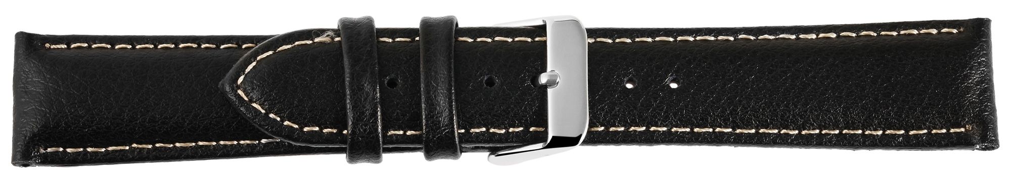 Produktinformationen "Echtleder Uhrenarmband, Edelstahl Dornschließe, schwarz mit weißer Naht, 20 mm"