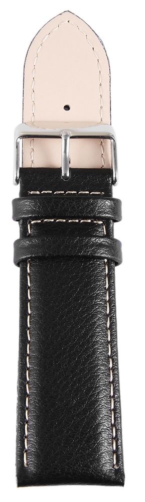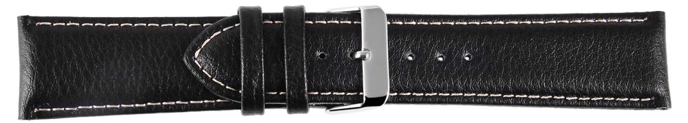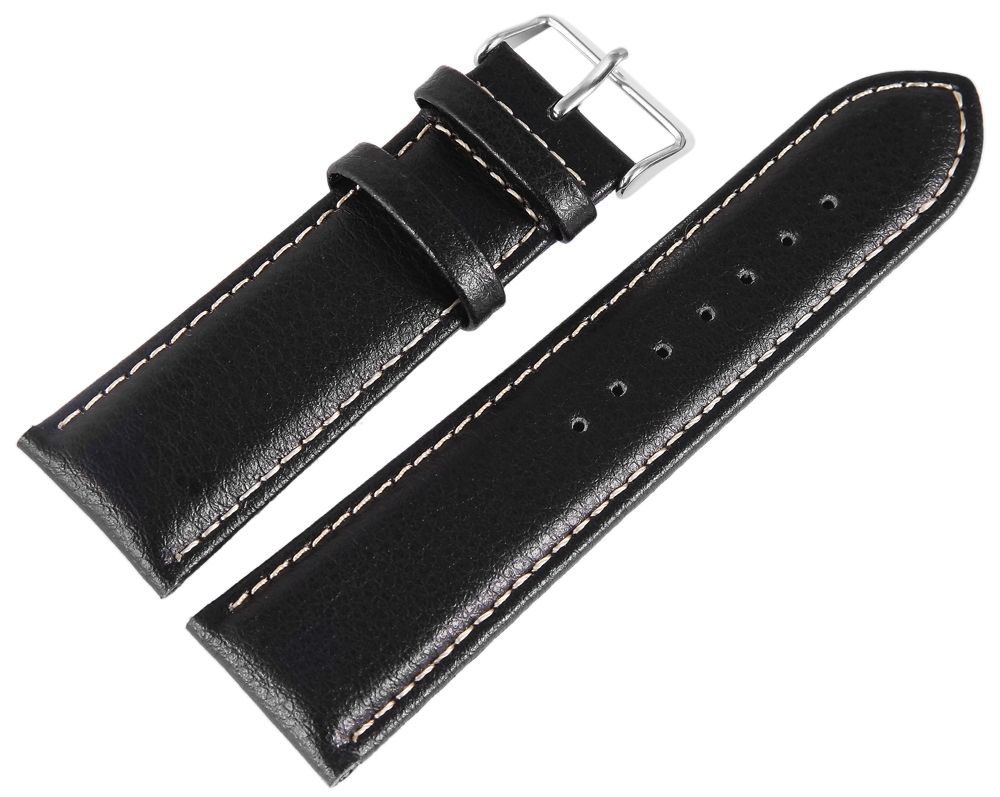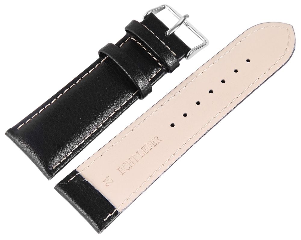 Produktinformationen "Echtleder Uhrenarmband, Edelstahl Dornschließe, schwarz mit weißer Naht, 22 mm"