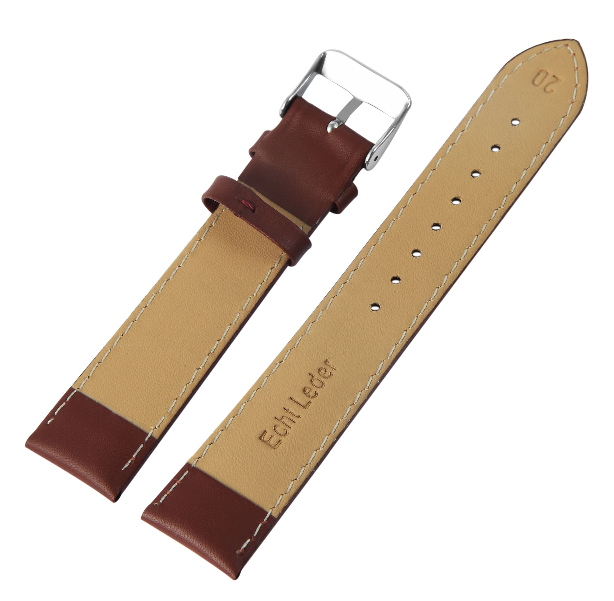 Echtleder-Uhrenarmband, dunkelbraun, 18 mm