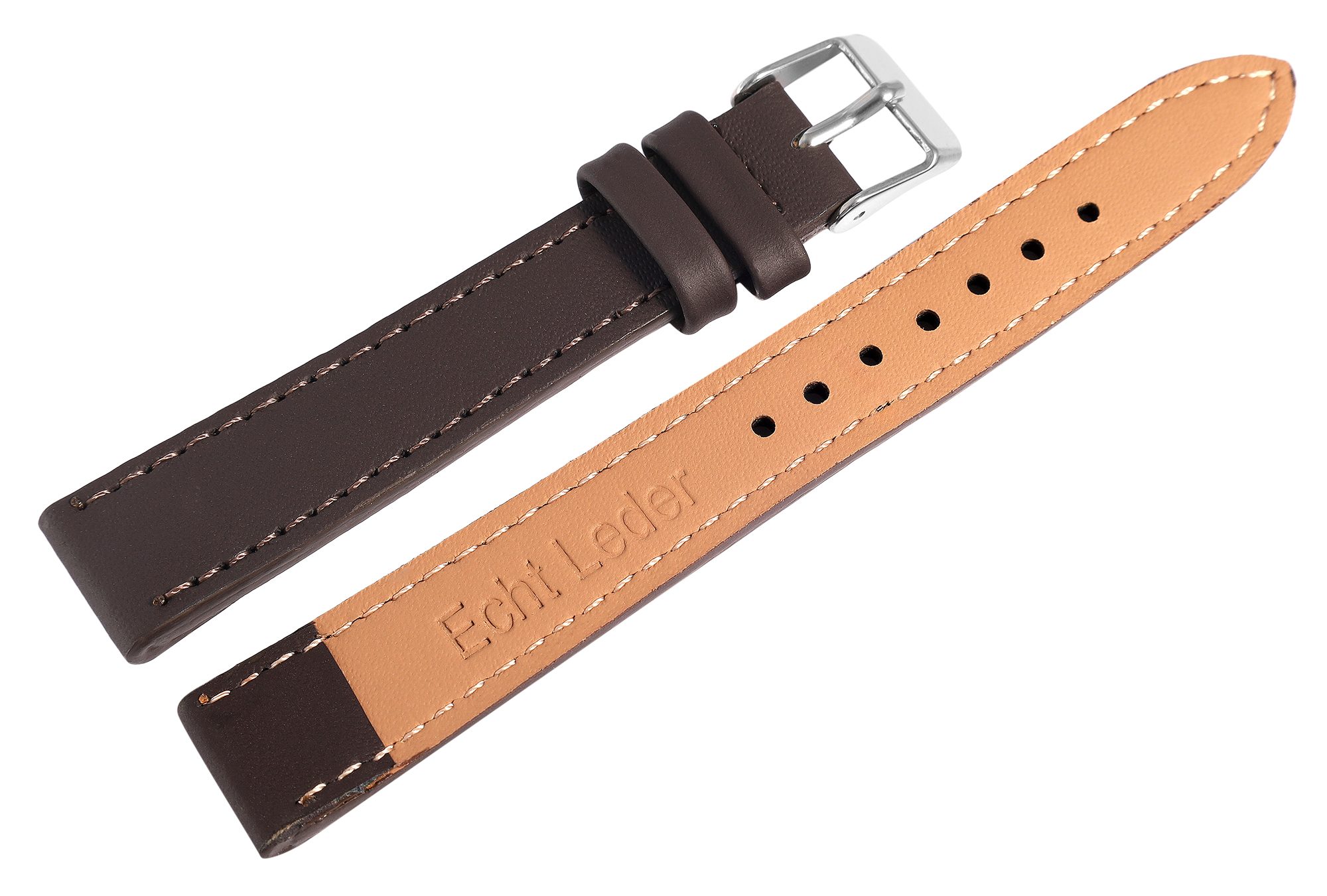 Dieses zeitlose Echtleder-Uhrenarmband in Dunkelbraun ist das ideale Basic-Ersatzmaterial für jede Uhrenwerkstatt und den täglichen Bedarf.