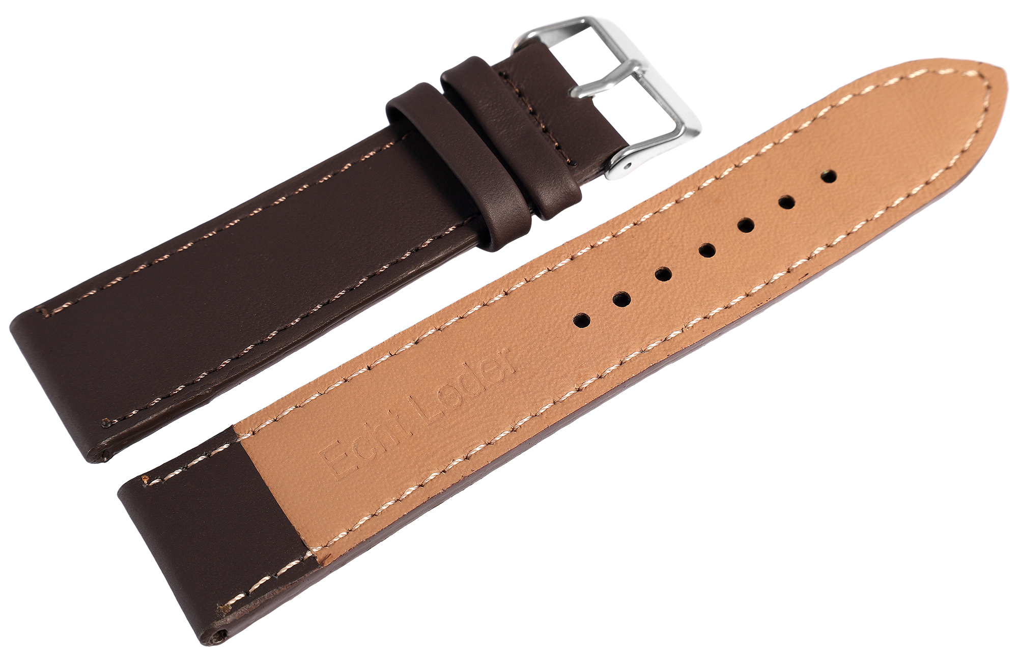 Dieses zeitlose Echtleder-Uhrenarmband in Dunkelbraun ist das ideale Basic-Ersatzmaterial für jede Uhrenwerkstatt und den täglichen Bedarf.