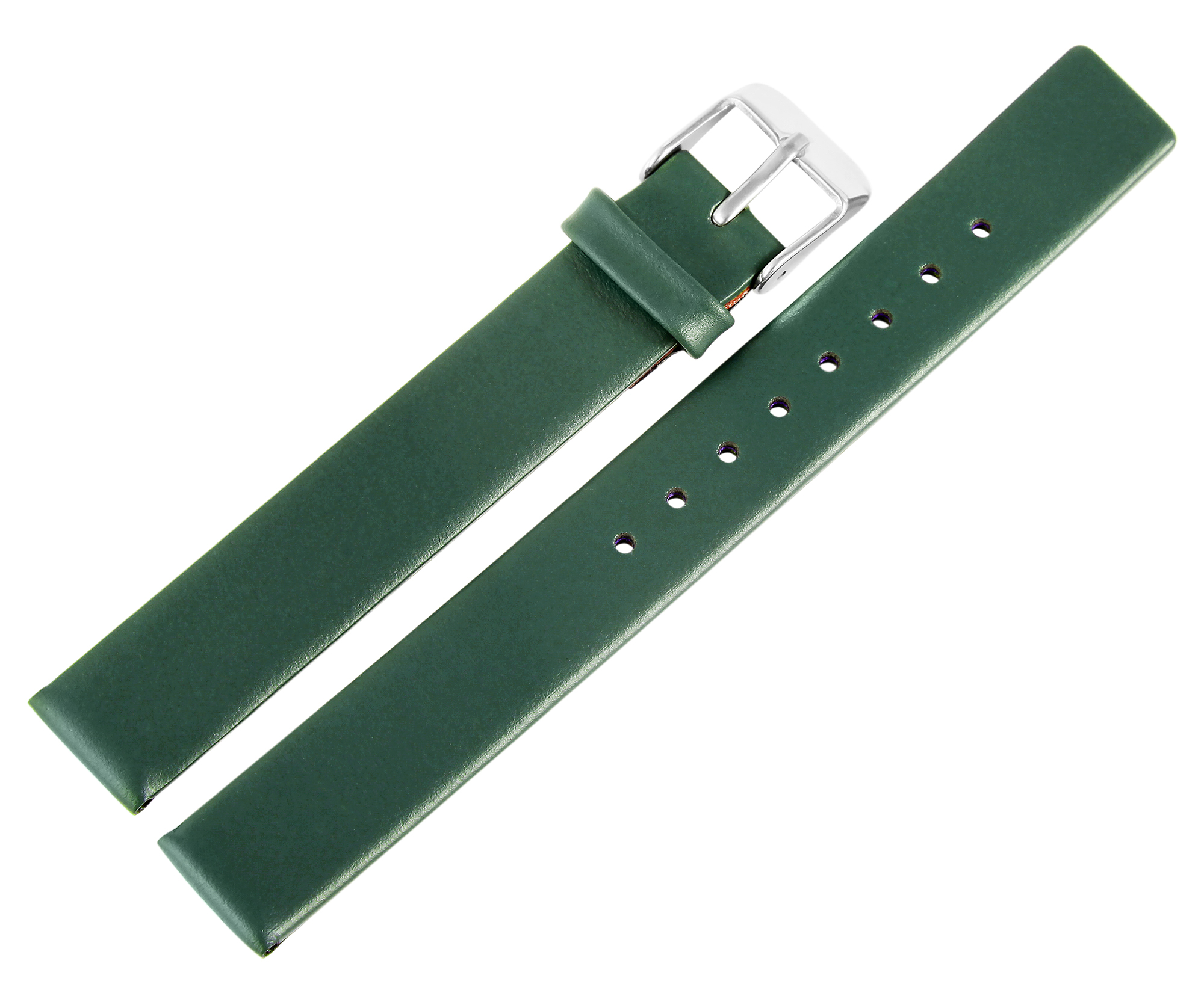 Das dunkelgrüne Uhrenarmband wurde aus Echtleder gefertigt und es hat eine Anstoßbreite von 14 mm. Die Gesamtlänge des Bandes beträgt 20,5 cm und die Materialstärke beträgt 2 mm. Das Ersatzarmband lässt sich mit einer silberfarbenen, hochglanzpolierten Dornschließe öffnen und schließen. Das glänzende Finish in Kombination mit dem glatten Lederband unterstreicht das schöne Design des Uhrenarmbandes und sorgt für ein schnelles und leichthändiges An- und Ablegen.