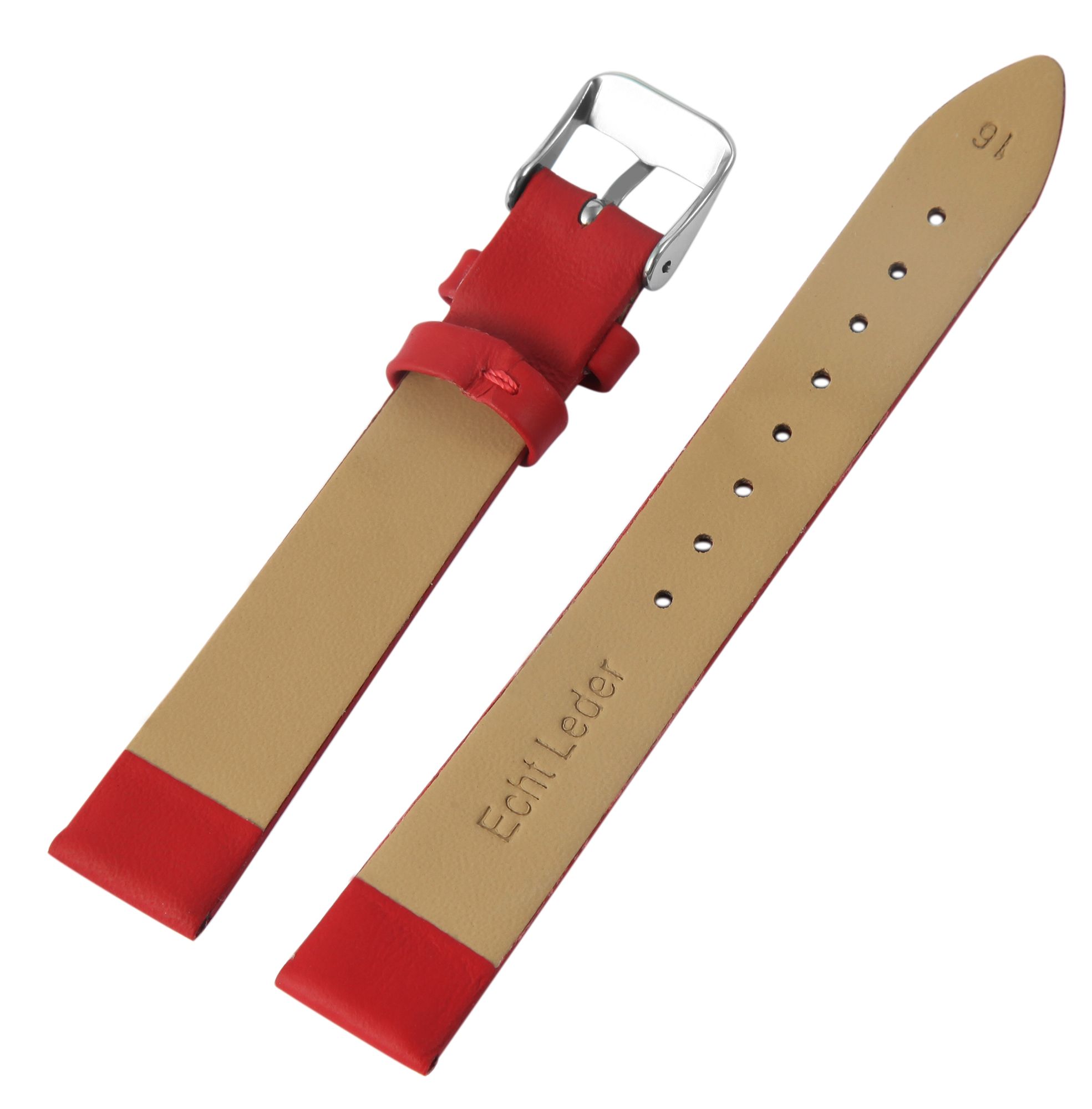 Echtleder-Uhrenarmband, nahtlos, rot, 18 mm
