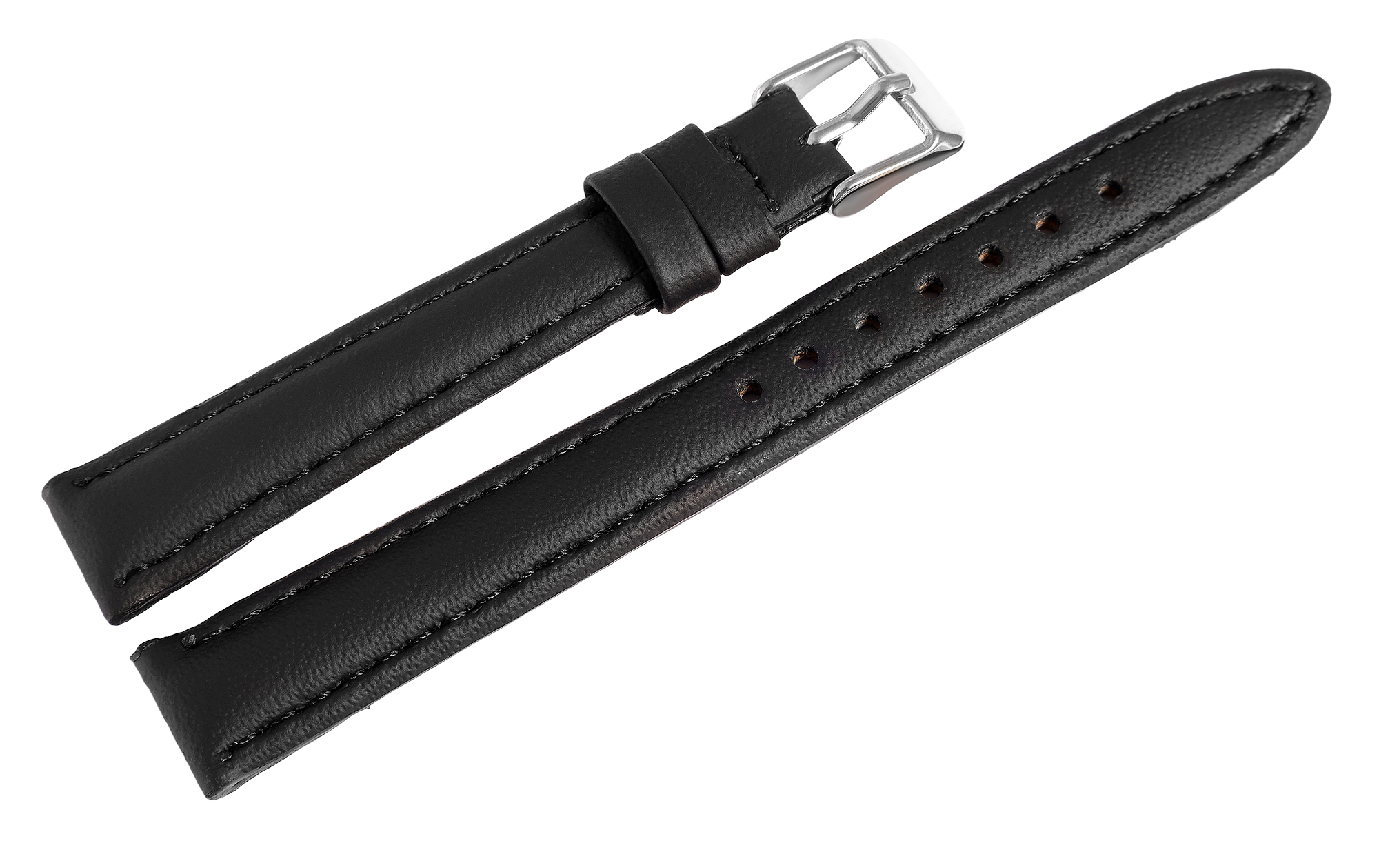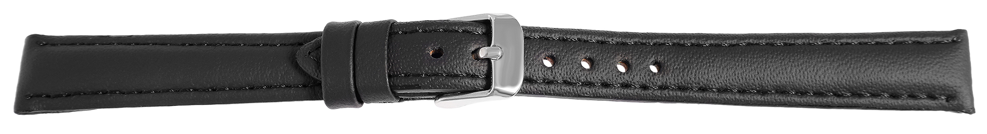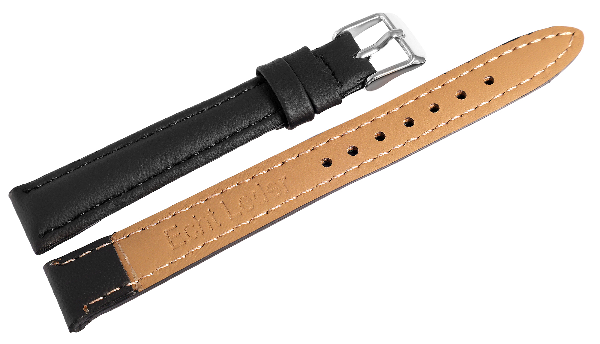 Dieses zeitlose Echtleder-Uhrenarmband in Schwarz ist das ideale Basic-Ersatzmaterial für jede Uhrenwerkstatt und den täglichen Bedarf.