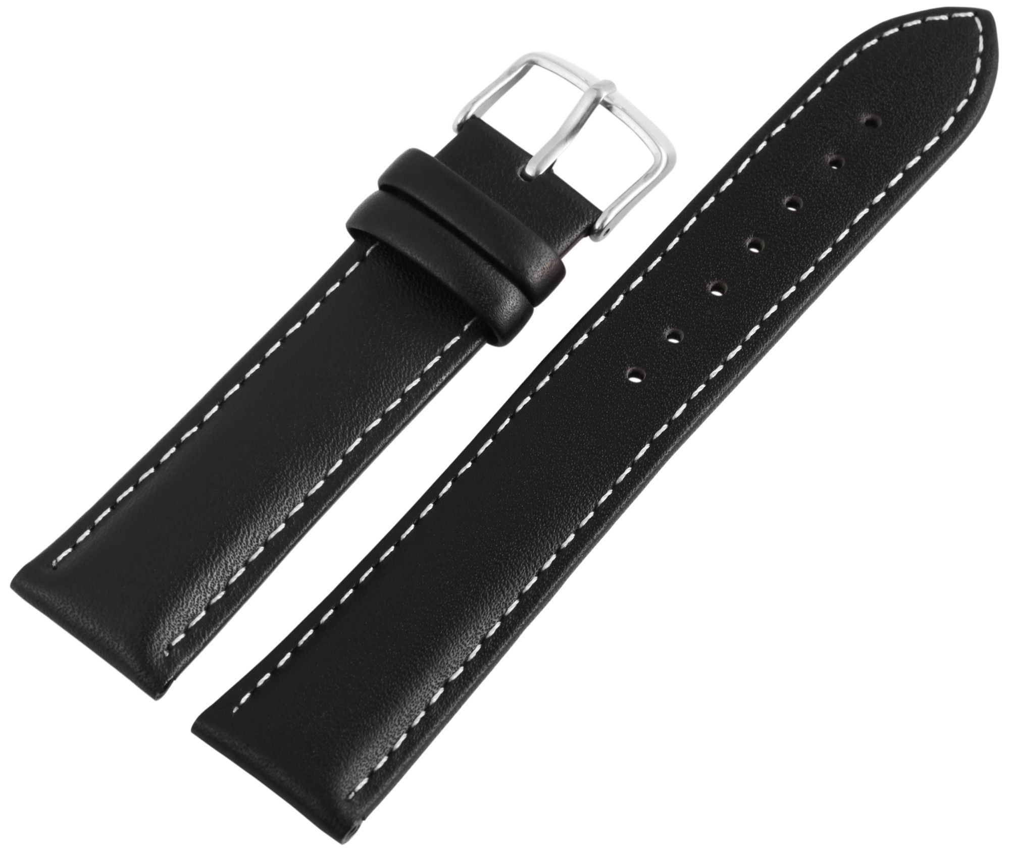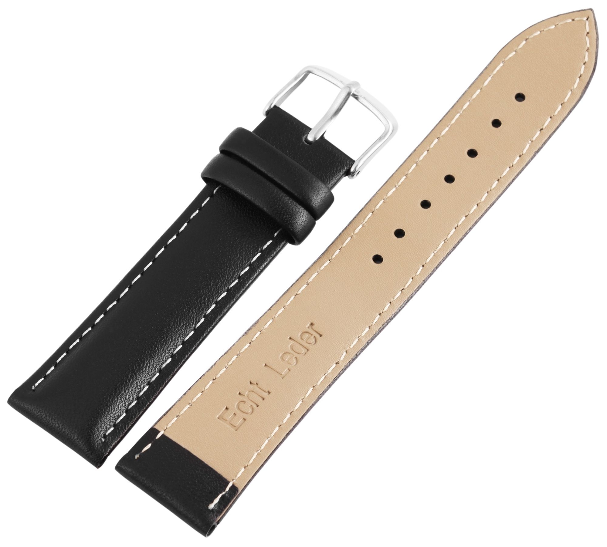 Produktinformationen "Echtleder-Uhrenarmband, schwarz, weiße Naht, 12 mm"