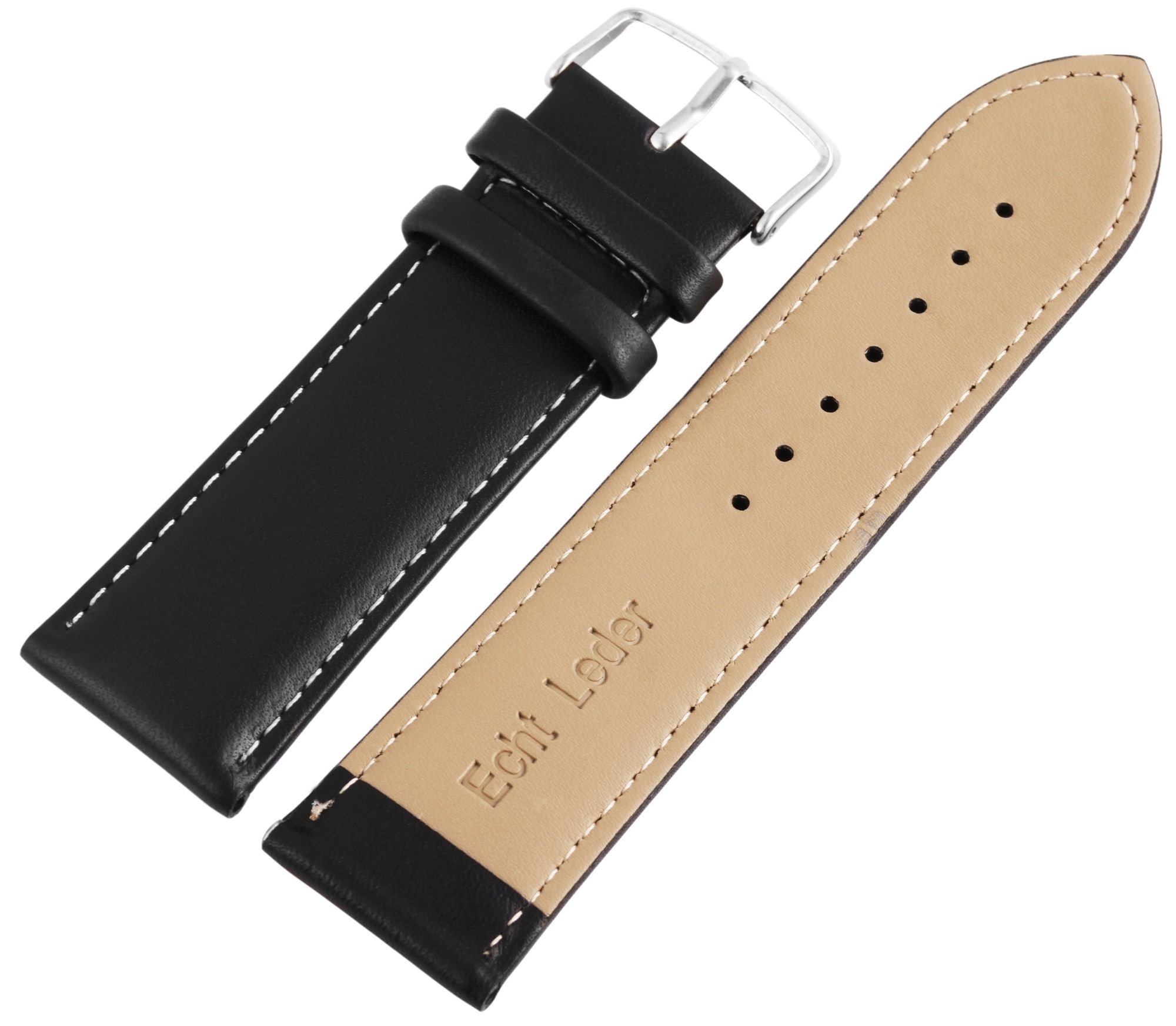 Produktinformationen "Echtleder-Uhrenarmband, schwarz, weiße Naht, 26 mm"