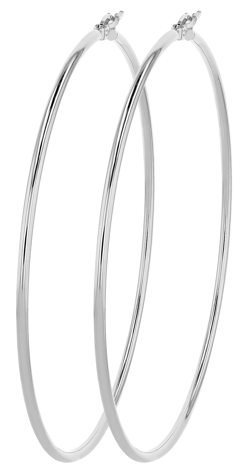 Diese hochglanzpolierten, silberfarbigen Creolen aus robustem Edelstahl sind mit einem Durchmesser von 70 mm und einer Stärke von 2 mm ein echter Blickfang. Ihr klares Design und der praktische Klappverschluss aus Edelstahl machen sie zum idealen Accessoire für jeden Anlass.