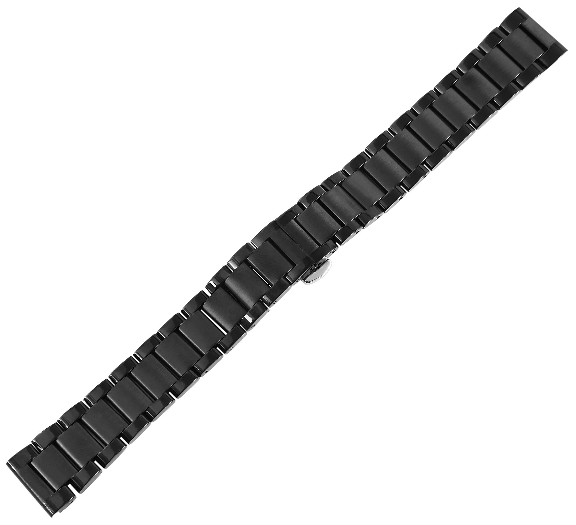 Klassisches Gliederband aus Edelstahl in Schwarz mit einem auffälligen Design aus polierten Randgliedern und gebürsteten Mittelgliedern. Diese sportliche Optik überzeugt. Mit Anstoßbreiten von 18 mm bis 24 mm bietet diese Armbandkollektion zudem eine weite Bandbreite für passende Gehäuse unterschiedlicher Größen. Abgerundet wird das 18 cm lange und 3 mm starke Armband durch eine komfortable Butterfly-Schließe. Der Druckmechanismus dieser Schließe lässt ein schnelles und einfaches Öffnen des Armbandes zu, während er dieses gleichzeitig sicher schließt.