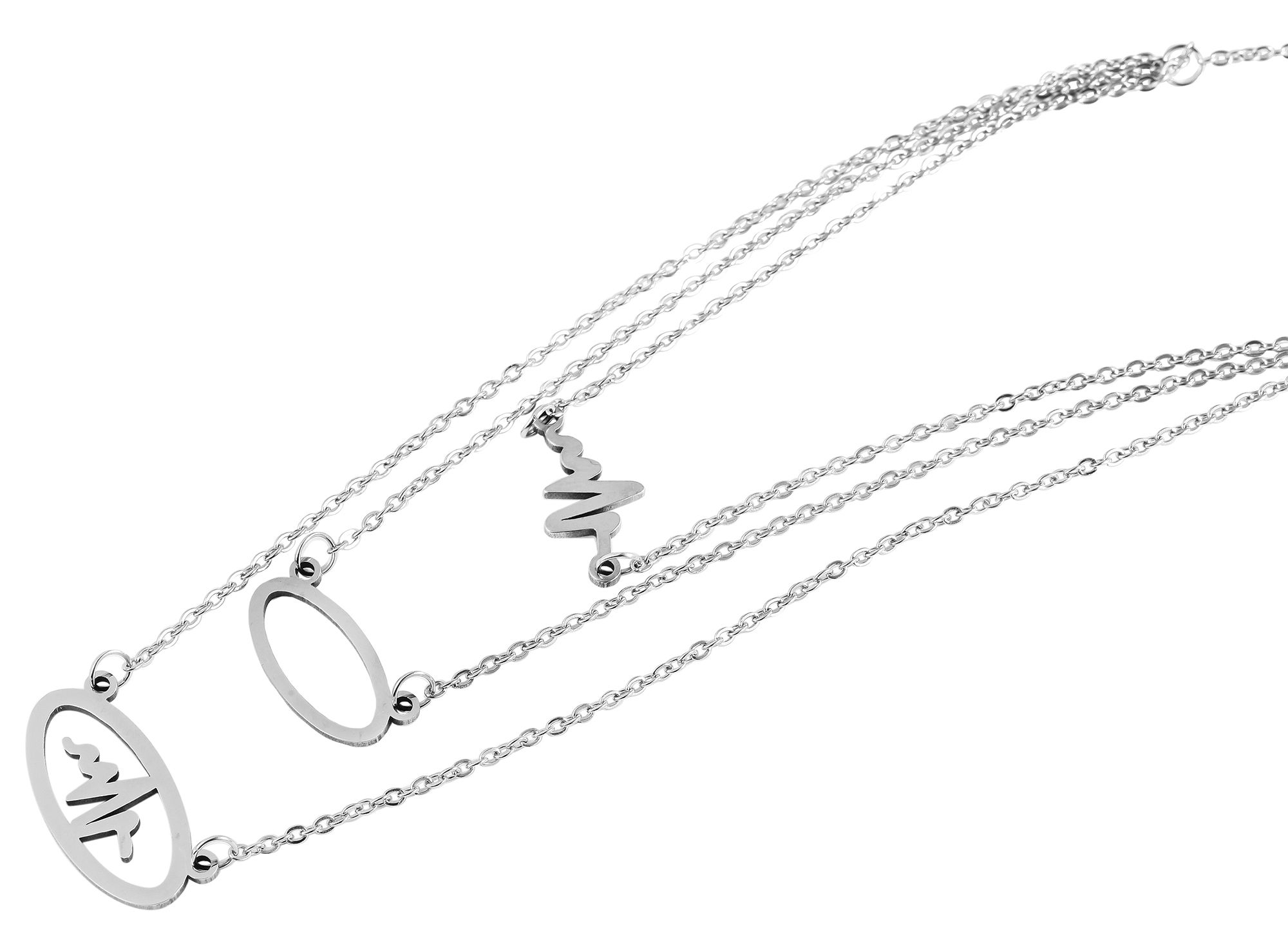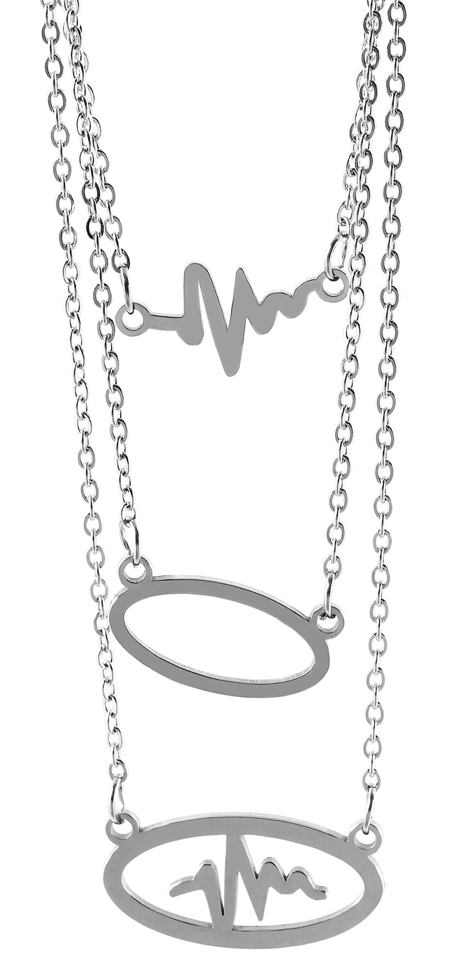 Produktinformationen "Edelstahl Schmuckset, Kette mit Anhänger + Ohrringe, mehrreihig, Herzschlag, silberfarbig"