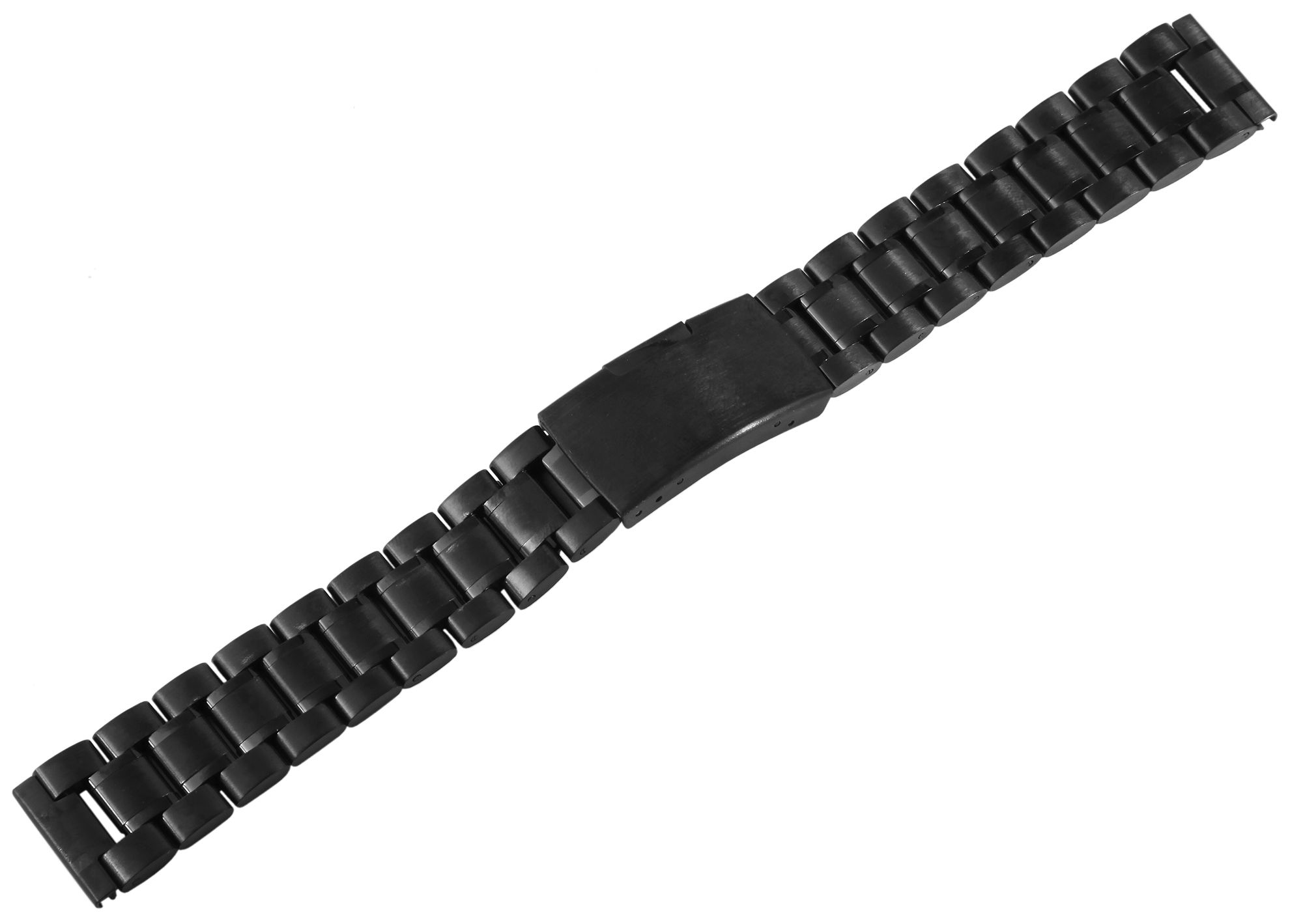 Das schwarze Uhrenersatzarmband ist aus Edelstahl gefertigt und lässt sich über eine schwarze Edelstahlfaltschließe öffnen und schließen. Das Ersatzarmband setzt sich aus vielen Elementen zusammen, die sich mit wenig Aufwand entnehmen lassen. Damit ist das Band individuell auf jedes Handgelenk anpassbar. Die Gesamtlänge des Bandes beträgt 16,5 cm. Das Edelstahlarmband ist in den Anstoßbreiten 18 mm, 20 mm, 22 mm und 24 mm erhältlich. Der Anstoß ist gerade und somit mit jeder Uhr kompatibel. Die gesamte Oberfläche des Armbandes ist mattiert. Diese Art der Oberflächenbearbeitung lässt das Uhrenarmband schlicht, aber auch elegant wirken und passt somit perfekt zu jeder Uhr.