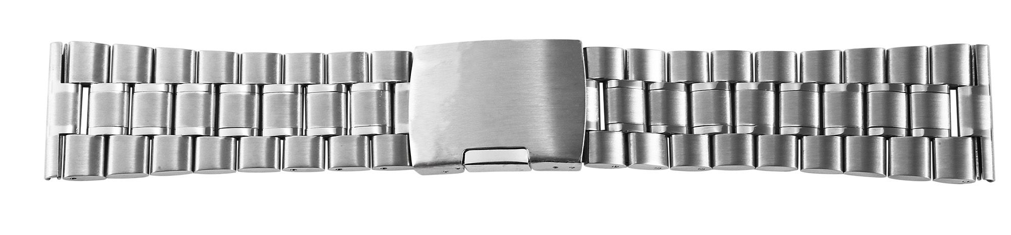 Das klassische Gliederarmband für Uhren hat eine teils polierte, teils mattierte Oberfläche. Diese Art der Oberflächenbearbeitung verleiht dem Uhrenarmband einen sportlichen Look. Dieses Armband ist in Kombination mit dem passendem Gehäuse der perfekte Wegbegleiter in allen Situationen. Es hat eine Anstoßbreite von 24 mm. Mit der Faltschließe lässt sich das Armband schnell und einfach öffnen und schließen. Dank des Sicherheitsbügels ist ein ungewolltes Öffnen ausgeschlossen. Durch die aneinander gereihten einzelnen Elemente bietet das Armband eine besondere Festigkeit. Die Glieder sind jeweils mit runden Stiften verbunden. Dies sorgt für eine hohe Anpassungsfähigkeit am Handgelenk und ein angenehmes Tragegefühl.