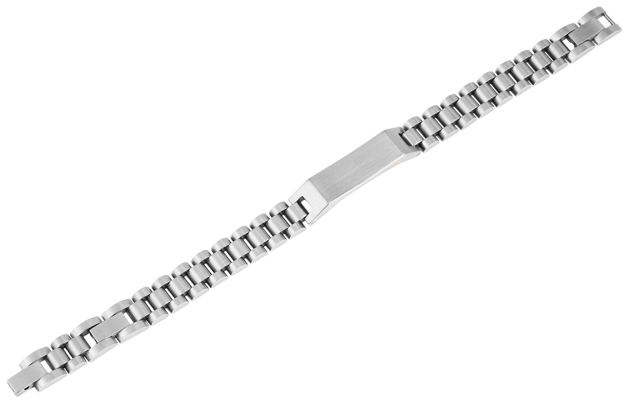 Das Armband der Marke Akzent ist aus Edelstahl gefertigt und fasst eine 41 mm lange Identplatte. Sie ist 11 mm breit und bietet genug Platz für verschiedene Gravuren. Die Maße des Schmuckarmbandes ergeben sich aus einer Gesamtlänge von 19 cm, einer Breite von 1 cm und einer Materialstärke von 0,5 cm. Öffnen und schließen lässt sich das schlichte Armband mit einem Edelstahlhakenverschluss und eine Verlängerung von 1,5 cm ermöglicht eine Anpassung an jedes Handgelenk. Die Oberfläche weist eine polierte Optik auf und macht das Armband dadurch zu einem besonderen Accessoire.