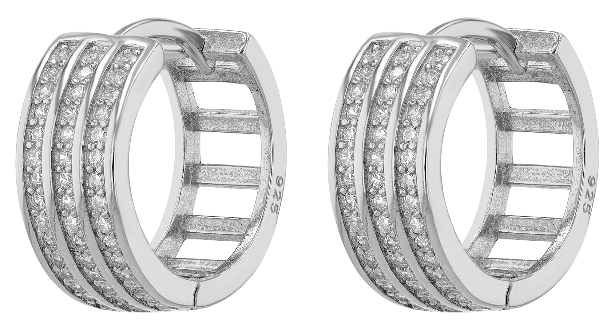 Das Highlight, drei Reihen mit insgesamt 45 funkelnden Zirkoniasteinen auf der Vorderseite, diese bringen die Creole zum Strahlen.