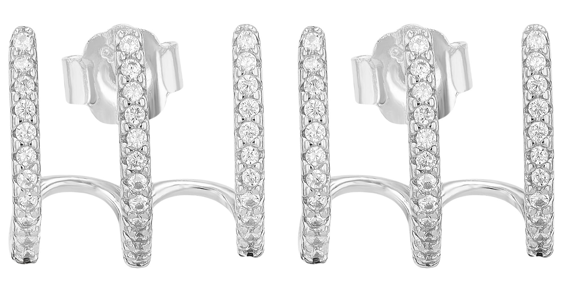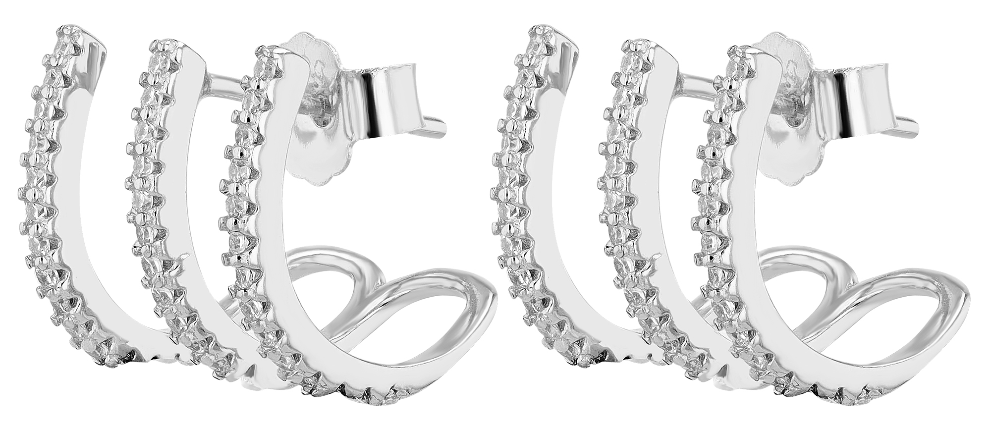 Produktinformationen ""Eli" 925/- Echt Silber Dreifach Halbcreole mit Stecker, Zirkonia, silberfarben, rhodiniert"