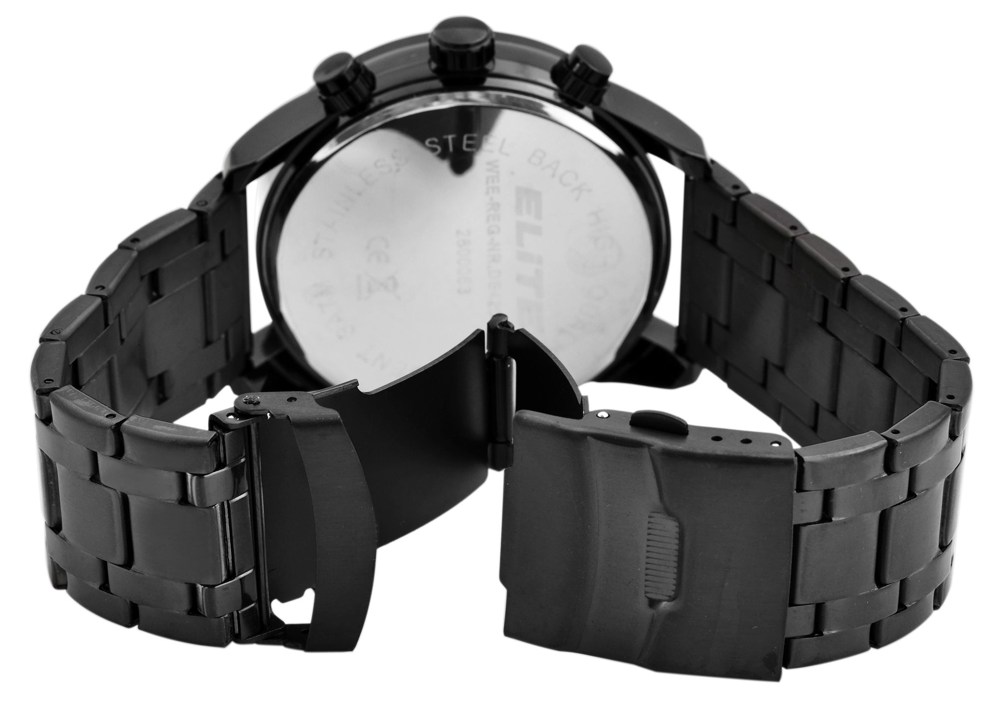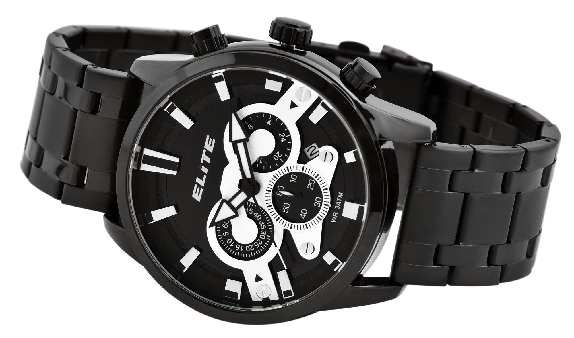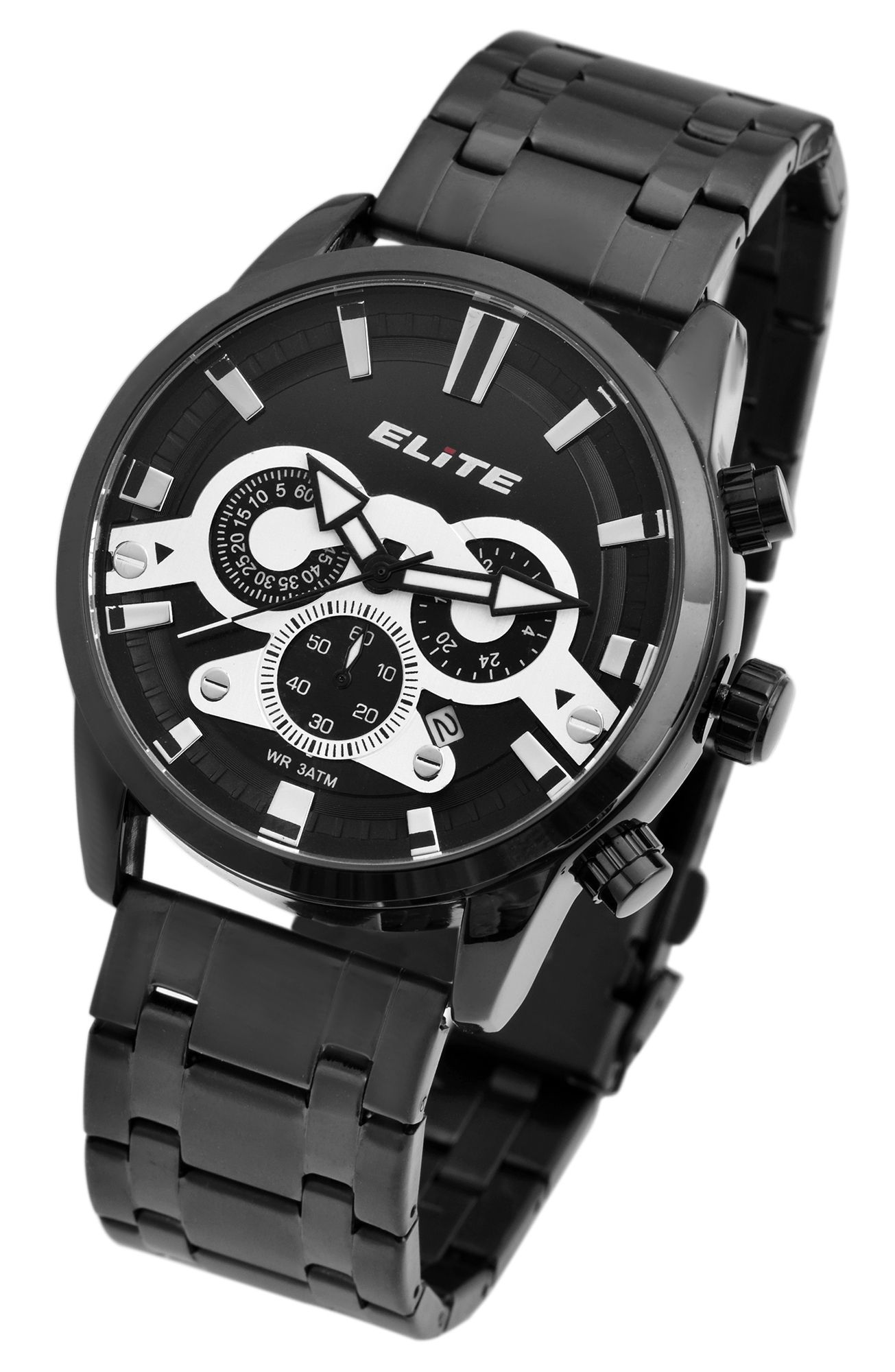 Elite Herren Chronograph mit Metallband, 3ATM, Schwarz/ silberfarbig